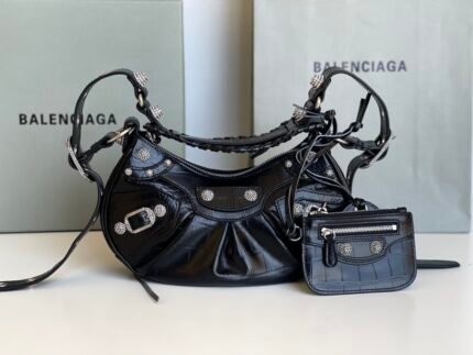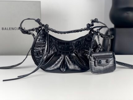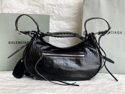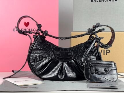 Black crocodile print with diamonds s/33cmnLe Cagole half moon bag dumpling bag biker bagnWuhu! I’ve regained my love for biker bagsnThe curved half-moon body retains the soft feel of the leathernThere’s also a small tasseled wallet charmnThe most important thing that makes me happy is that there’s an extra ♥️ small mirror! nAll-around details hold ~ 👌🏻nPin it, xs bought silver, s bought white nThe details of the whole bag is really more than my headache nSneak and you guys say nTo do all the details are the right version of the may be only one of our family 🤫 nEvery piece of hardware and every detail has to be developed to the exact same nThe efficiency of this is It’s impossible to compare it with the one that doesn’t get the right version of the goodsnSo please be patientnBecause I’m also dedicated to slow worknMake it worth your whilenModel No. n: 701 diamondsnsLarge: 33×16×8.4cm