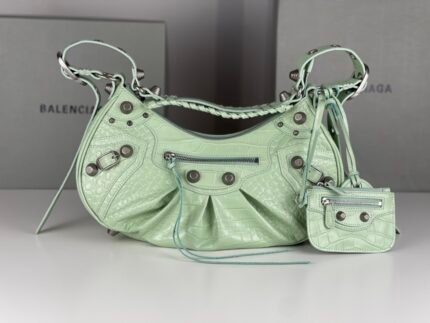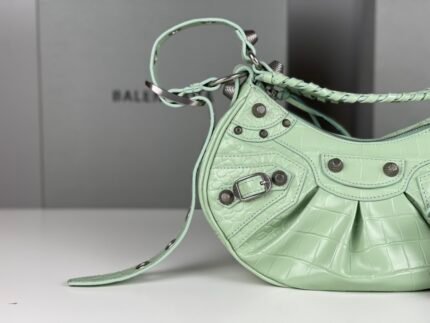 🔘 Crocodile Mint Green 🔘 Shipping ✔️nBalenciag Le Cagole Half Crescent Armpit Dumpling Bag n Tribute to the classic biker bag series of the new king of the bomb debut la ~ in the traditional biker bag to improve on the traditional braided shoulder strap additional eyelets and hanging leather card holder, heart-shaped mirror ♡ along with the classic elements of the bikes! The details are very elaborate The upper body is simply obsessed n retro rate Full of rock and roll breath of bold and edgy Spicy Girls Ben Hot must be manually a love! n Model No.: 701 Small n Size: L26XH16XW10CM