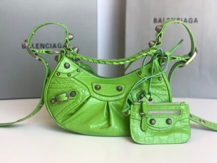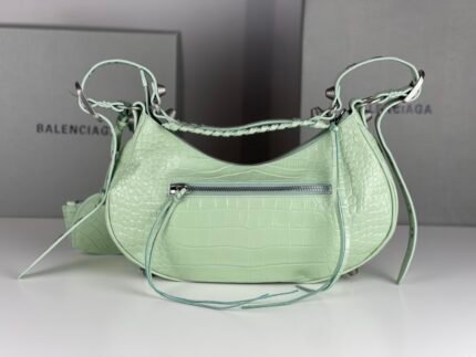 🔘Crocodile print apple green 🔘Shipping ✔️nBalenciag Le Cagole half-moon crescent armpit bag dumpling bag n homage to the classic biker bag series of the newest king of the bomb debut la n ~ in the traditional biker bag on the improvement of the adjustable weave shoulder strap with additional eyelets and hanging leather card holder, heart-shaped mirror ♡ along with the classic elements of the bike! The details are very elaborate The upper body is simply obsessed n retro rate Full of rock and roll breath of bold and edgy Spicy Girls Ben Hot must be manually a love! n Model No.: 701 Small n Size: L26XH16XW10CM