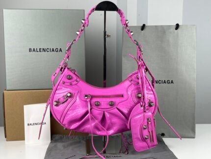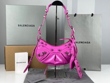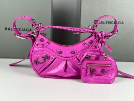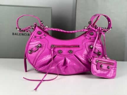 🟣Crocodile print Rose 🟣Shipping ✔️nBalenciag Le Cagole half-moon crescent armpit bag dumpling bag nTribute to the classic biker bag series of the heavyweight new king of the debut of la n ~ in the traditional biker bag on the improvement of the traditional braided shoulder strap with additional eyelets and hanging leather card holder, heart-shaped mirror ♡ along the classic biker elements The details are very elaborate The upper body is simply obsessed n retro rate Full of rock and roll breath of bold and edgy Spicy Girls Ben Hot must be manually a love! n Model No.: 701 Small n Size: L26XH16XW10CM