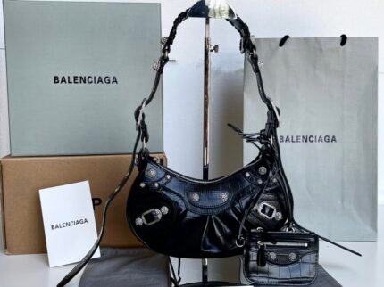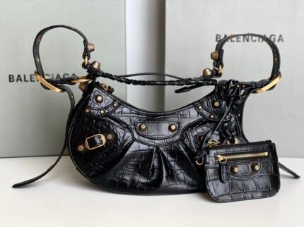 📢Crocodile Black Gold Buckle ✔️nBalenciag Le Cagole Half Moon Crescent Armpit Bag Dumpling Bagn Tribute to the classic biker bag series of new heavyweight king of the debut of la ~ in the traditional biker bag to improve on the adjustable weave shoulder strap additional eyelets and external leather card bag, the heart-shaped hanging mirror ♡ along with the elements of the classic biker Details are very elaborate on the body is obsessedn Vintage rate Full of rock ‘n’ roll flavor bold and edgy Spicy girls this spicy must hand a love! n Model No.: 701 Small n Size: L26XH16XW10CM