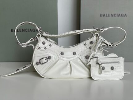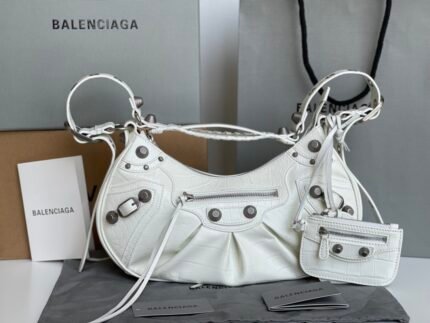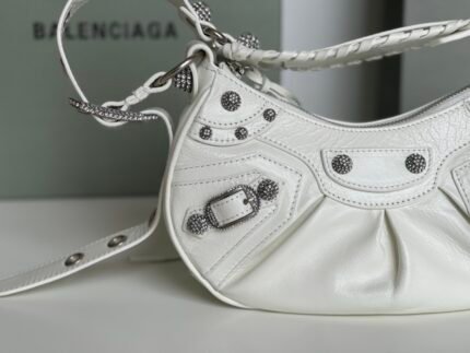 ⚪️ crocodile print white /silver buckle ⚪️ shipping ✔️nBalenciag Le Cagole half-moon crescent armpit bag dumpling bag n homage to the classic biker bag series of new heavy bomb debut la ~ in the traditional biker bag has been improved Adjustable weave shoulder strap additional eyelets and hanging leather card holder, heart-shaped hanging mirror ♡ along with the Classic biker elements Details are very elaborate on the body is simply obsessed n retro rate Full of rock and roll breath of bold and avant-garde Spicy girls this spicy must be manually a love! n Model No.: 701 Large n Size: L33XH16XW8CM
