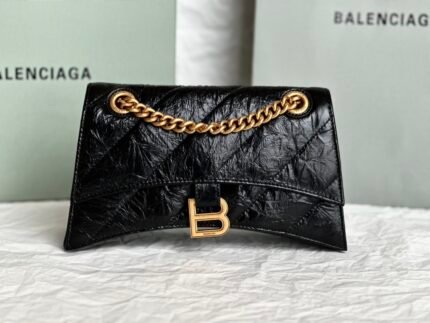 [Small Oily Wax Black]n𝐁𝐚𝐥𝐞𝐧𝐜𝐢𝐚𝐠 𝐚 crush the most fragrant hourglass chain bag 🛍n from the Parisian house 22 years of fall and winter collection – Crush handbags aura of powerful practicality of the big bag strong return! nBreaking the traditional stiff bag type, the use of stitching soft calfskin material, with bold metal slip chain, shoulder strap can be switched at will shoulder crossbody back method, casual atmosphere style welcome lai🉑nModel No.: 151 small nMedium size: 31x20x bottom 12cm nSmall size: 25x15x bottom 9.5cm