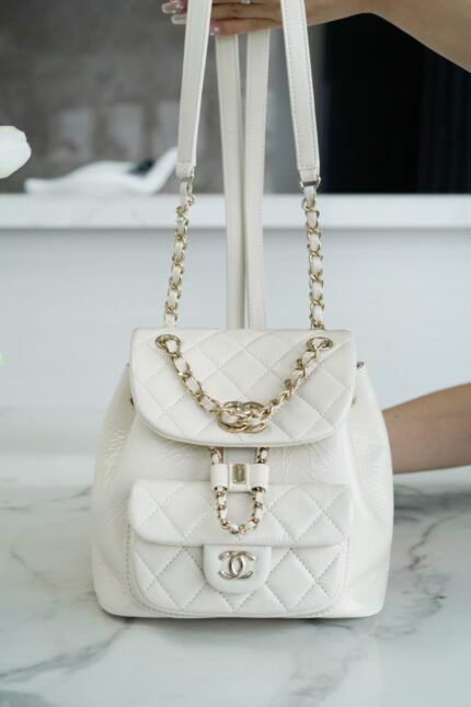 𝗖𝗛𝗔𝗘𝗡𝗟✦ 22𝗖 𝗗𝘂 𝗺𝗮 Shoulder bag 🤍 Milkshake white nn original oil waxed cowhide texture feel hand feel visual sense are good 🎗 with champagne gold hardware, shoulder strap with adjustable holes can be adjusted, a unique sense of design and full of utility ➿ go everywhere are not afraid! ! nWearing any clothes are very good with ~ double shoulder shoulder handheld are good, eye-catching power I give 💯 points! nnSize: 18×18×11cmn🔍: D21020831