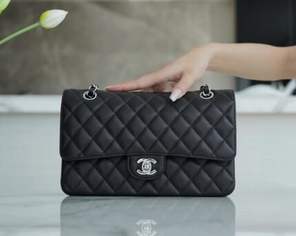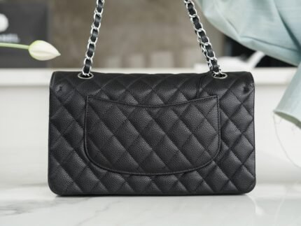 “Classic Flap” classic mouth cover bag black silver fine ball pattern 〰️nn Italian 🇮🇹 channel custom calfskin 🐂, granularity, gloss, softness and coexistence of a first-class calfskin caviar, a hundred years, very rare [color], classic diamond pattern Design and leather wear metal chain collocation, simple atmosphere, both retro flavor at the same time and elegant modern, is what every woman wants to have 𝒃𝒂𝒈💘nn Size: 25cm n 🔍: 11120051
