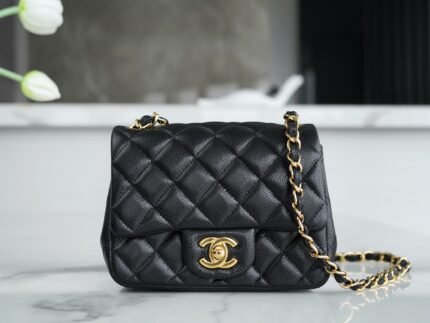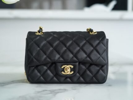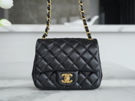 ℂ𝔽 𝗖𝗹𝗮𝘀𝘀𝗶𝗰𝗙 𝗹𝗮𝗽 |Lychee Pattern 𝗠𝗶𝗻𝗶 Black Gold🖤nn Imported Channels customized lychee pattern 🐂 calf leather, grain feel color is the best on earth, eleven years of pure handmade staple classic models. nDiamond pattern design and leather through the metal of the chain collocation, in line with the design of this revered luxury era, the classic double C shape locking clasp, in 1983 after the launch of the popularity of the world 💪nnSize: 12 x 20 x 6cm n 🔍: 11160531