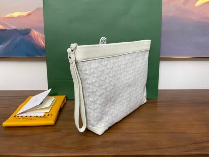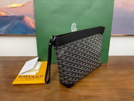Goyard’s new Conti clutch bag is now shipping [yay], it is light and structured, with a unique shape, generous leather components and sophisticated unisex style for all occasions from casual to formal, it is the ideal companion for storing your daily personal belongings. Multiple uses, can be held in the hand or clipped to the armpit, can also be wrapped around the wrist, the bag comes with a wrist strap made of soft Chevroches calf leather, comfortable to hold, can be used as a large bag in the organizer, Conti clutch bag is only available in one size and 11 colors to choose from, Dimensions: Bottom length 24cm Bottom width 6.5cm Height 22cm