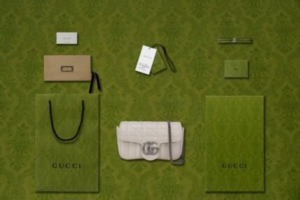𝐆𝐆𝐌𝐚𝐫𝐦𝐨𝐧𝐭 Geometric Collection White Mini nn The Aria – Fashion Aria” collection continues to boldly explore the brand’s classic symbolic elements. As part of Gucci’s Favorite Selection of Handbags, the GG Marmont collection is revered for its signature quilted leather and double G monogrammed interwoven accessories. On this mini shoulder bag, the classic material is incorporated with vertical and twill patterns to create a distinctive geometric style design. nSize: 22*13*6cmn🔍: 4467440590