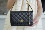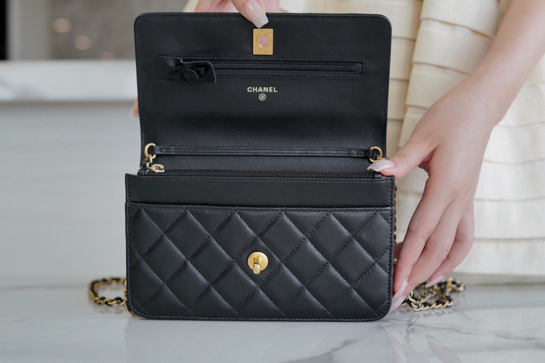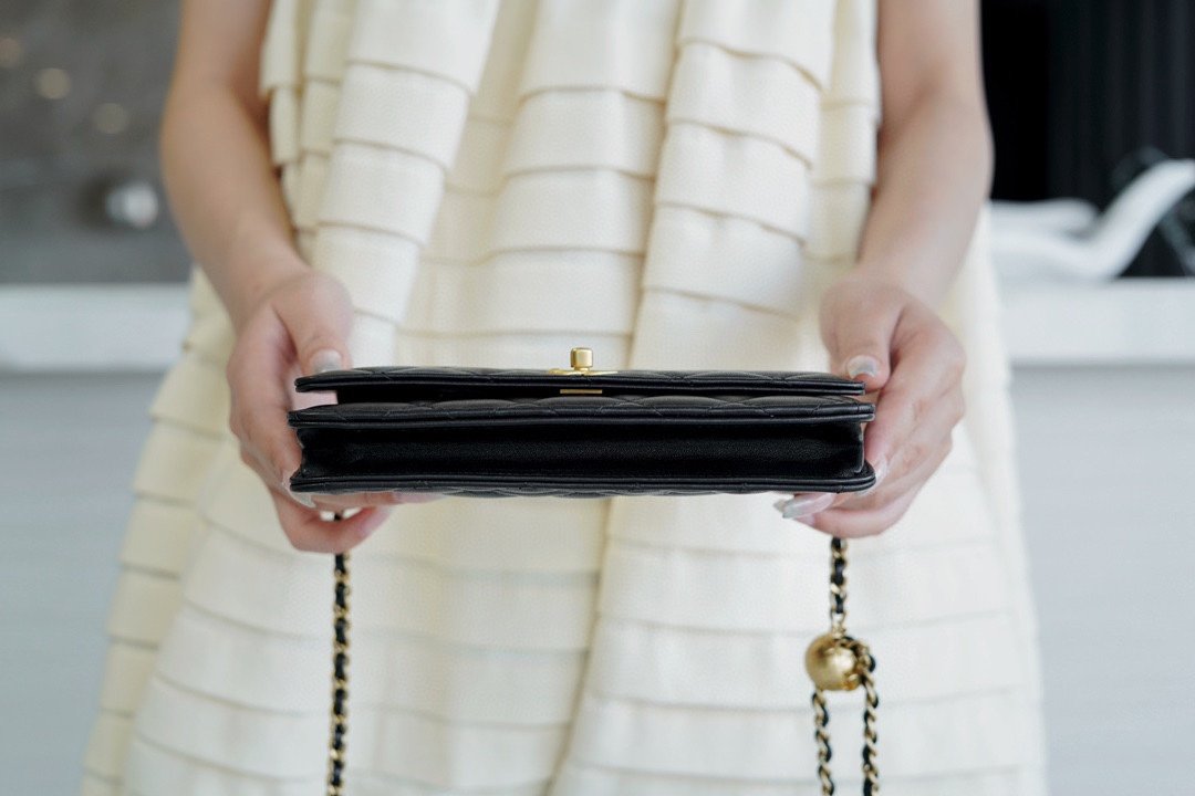 ๐—–๐—›๐—”๐—ก๐—˜๐—Ÿ๐Ÿ”… Metallic Ball ๐‘พ๐’ ๐’„ Black โžฟnnSheep leather material, unique metal ball adjustment designn Chain wallet (WOC for short) is one of the most favorite small bag accessories in the handbag world; nA multi-purpose bag, ultra-high degree of practicality eliminates all kinds of storage and turn the bag of the trouble, easy and casual and stylish ๐ŸŽตn Size: 12*19*3.5cmn๐Ÿ”: 20990570 $98.00