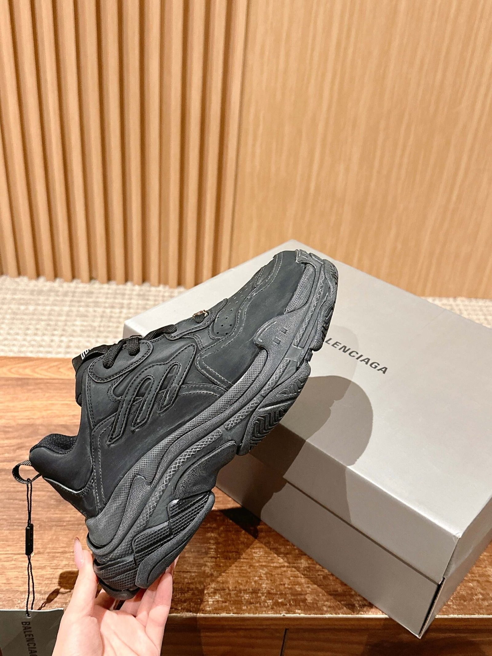 𝐁𝐀𝐋𝐄𝐍𝐂𝐈𝐀𝐆𝐀 🔥 The new Parisian House Triple S hits the 3B Sports IconnnToday we bring you a super cool shoe – the new Parisian House Triple S! The design of this shoe is inspired by the classic Cargo 3B Sports Icon elements,3 but not as Cargo is so exaggerated, it’s really fashionable and practical at the same time 👟n First of all, the color of this shoe is black, which is a color that will never go out of fashion! And it’s done very well with the old effect, giving people a retro feeling 🖤n Secondly, the design of this shoe is very unique, it combines the Triple S and 3B Sports Icon together, forming a new style This style has both a sense of sports and street style, perfect for those who like to hike! 🏃‍♂️🏃‍♀️nFinally, the comfort level of this shoe is also very high, whether you are walking or running, it can make you feel relaxed and comfortableSo, if you are also a person who loves sports, then this shoe is definitely worth having! 👟 Size: 35-45M