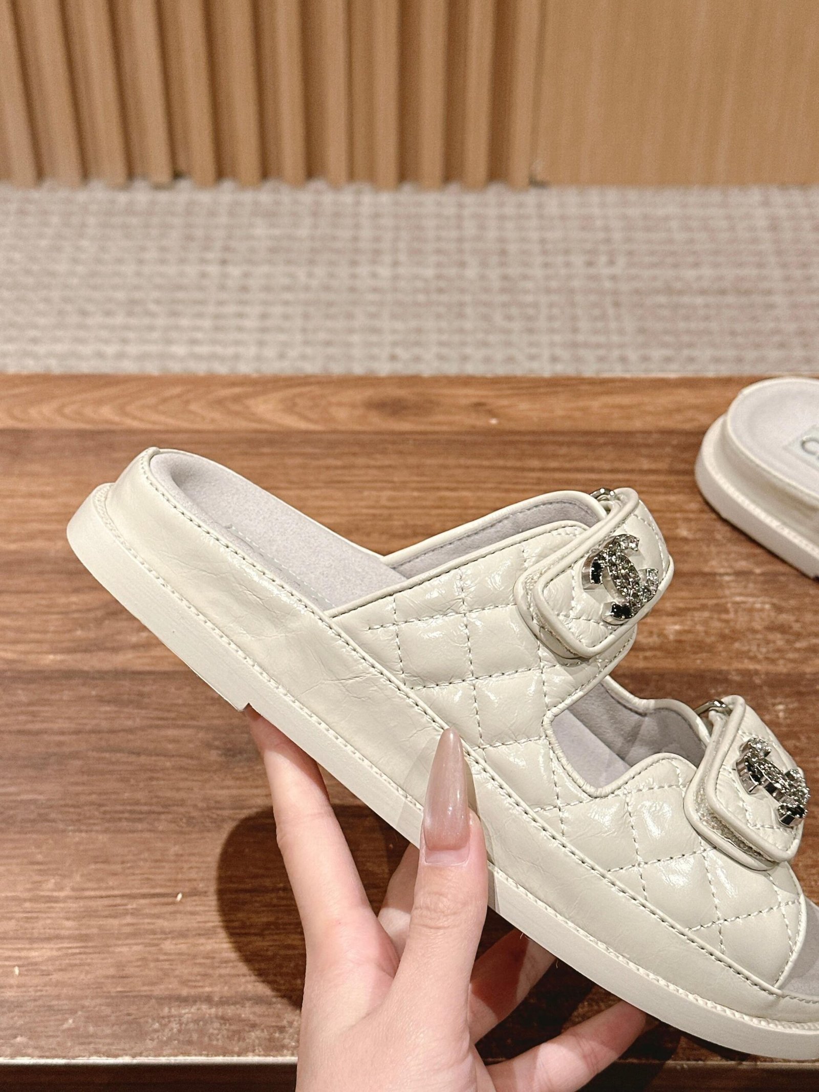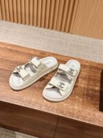 𝐂𝐇𝐀𝐍𝐄𝐋! This year’s new sandals are even more loved, classic double 𝐂 accessorized design, worthy of getting the treasure shoes! nnExcellent craftsmanship, customized original mixed breed lambskin leathernImported Italian three-layer handmade leather outsole Genuine leather along the stripes edgennSize: 35-39 (40 customized non-returnable)