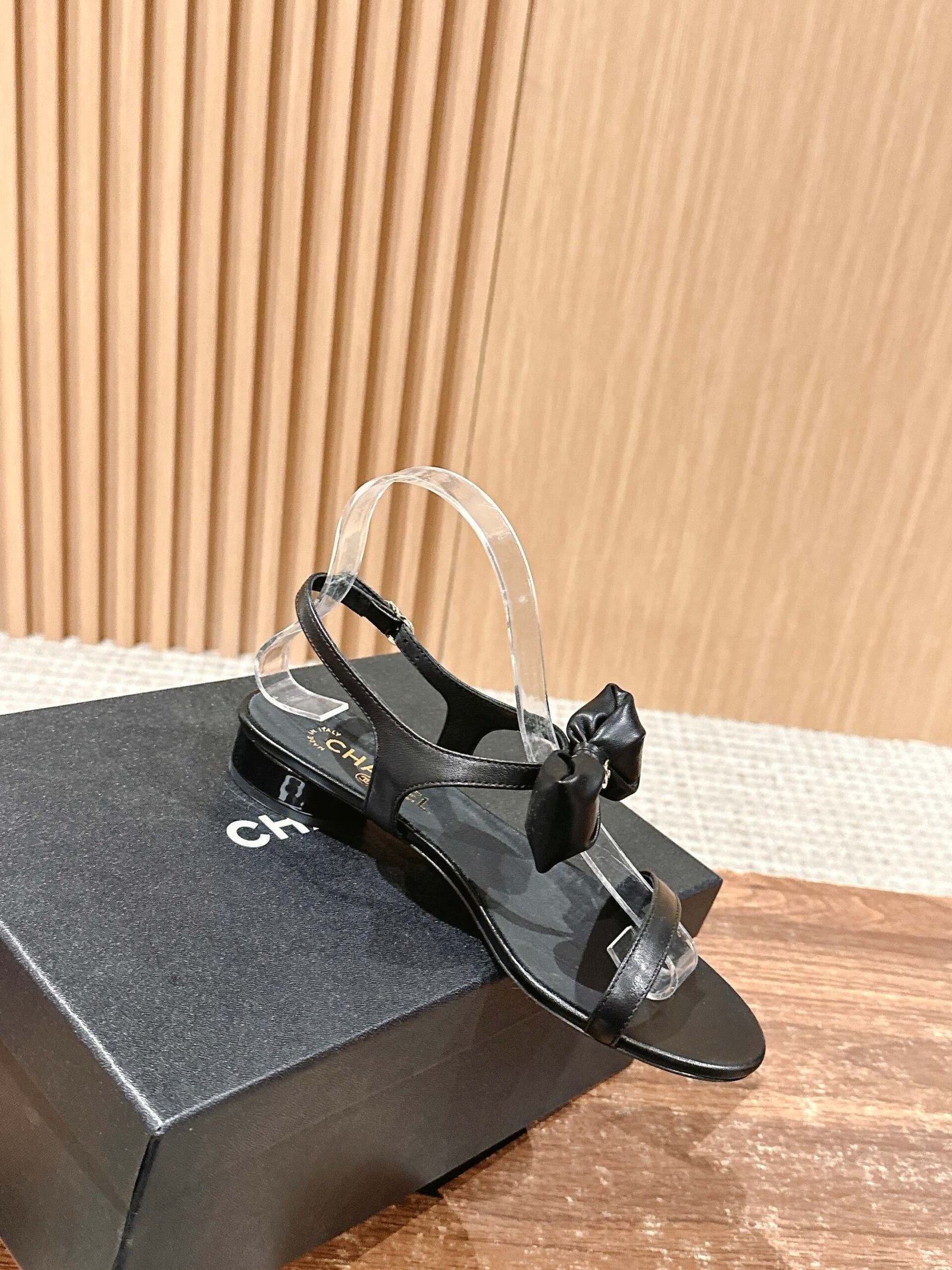 𝐂𝐇𝐀𝐍𝐄𝐋 𝟮𝟬𝟮𝟱 /𝐬𝐬 Chanel spring and summer bow sandals new, hand-wrapped sheepskin three-dimensional bow, bulging, very cute no girls will refuse it! nnSheepskin upper Lambskin lining, imported Italian cowhide solenTwo heights: flat and small chunky heel optionalnnSize: #35-41 (40 41 customized non-returnable) $158.00
