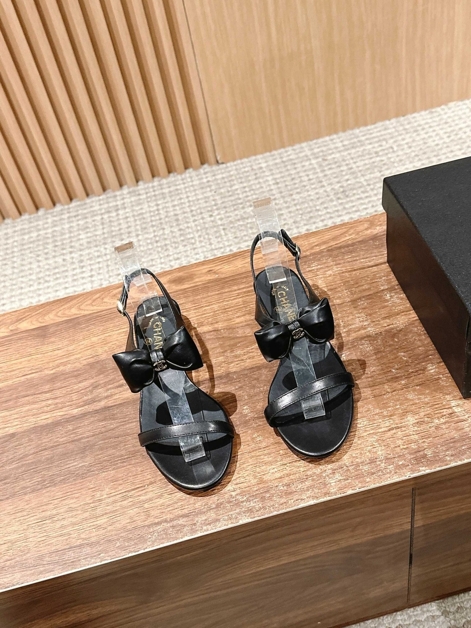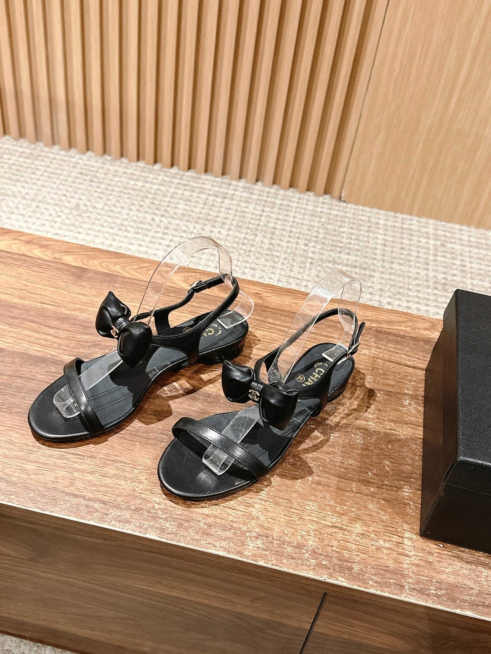 𝐂𝐇𝐀𝐍𝐄𝐋 𝟮𝟬𝟮𝟱 /𝐬𝐬 Chanel spring and summer bow sandals new, hand-wrapped sheepskin three-dimensional bow, bulging, very cute no girls will refuse it! nnSheepskin upper Lambskin lining, imported Italian cowhide solenTwo heights: flat and small chunky heel optionalnnSize: #35-41 (40 41 customized non-returnable)