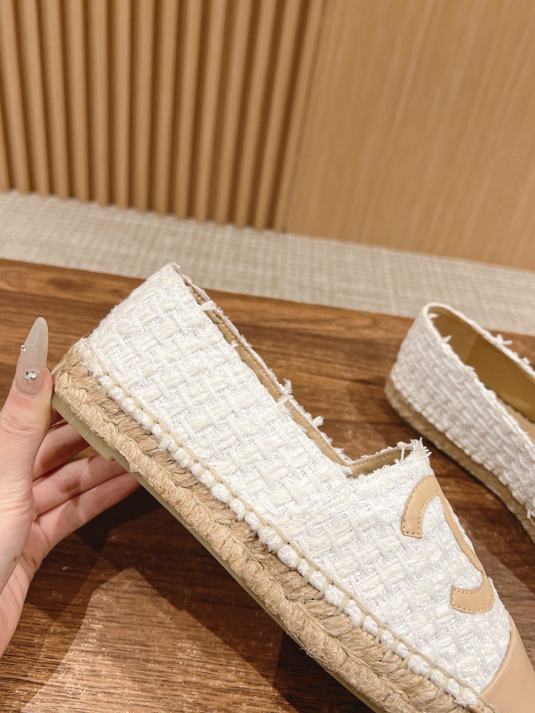 𝐂𝐇𝐀𝐍𝐄𝐋 Chanel Classic Fisherman’s Shoes n the history of the best wearing loafers ~ every year will be out of the new color ~ year to wear not tired ~ years will never go out of fashion ~ commuting shopping are very ok! n customized imported first layer of sheepskin fabric linen-cotton surface! Soft sheepskin lining Sisal rope with handmade braided flowers ➕Injected rubber translucent rubber outsole in original color nnSize: 35-39 (40 customized non-returnable)