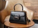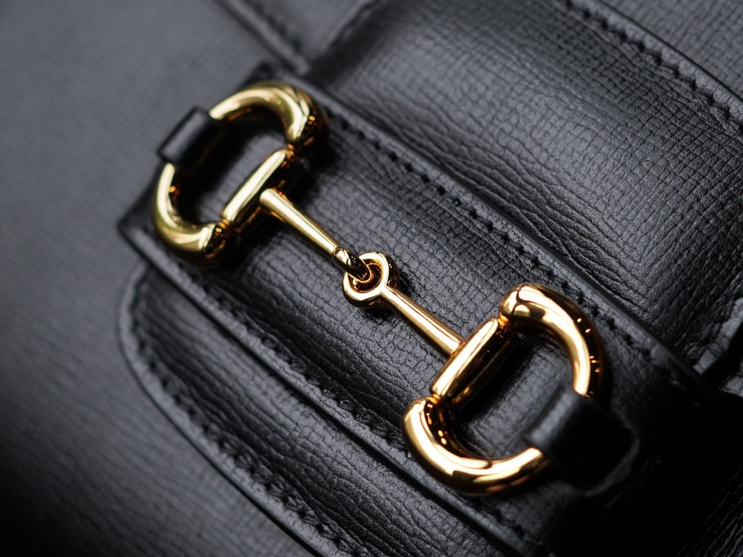 Horsebit 1955 Series Tote Bag is presented in black leather interpretation, this design is inspired by the brand’s equestrian origins, consisting of two elements: double rings and long stripes, which has become one of the brand’s highly recognizable iconic elements.