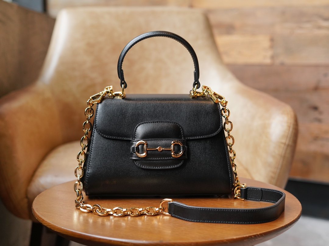 ๐‡๐จ๐ซ๐ฌ๐ž๐›๐ข๐ญ๐ญ๐Ÿ๐Ÿ— ๐Ÿ“๐Ÿ“ Series Tote Bag Black Small nnHorsebit 1955 Series Tote Bag is presented in black leather interpretation, this design is inspired by the brand’s equestrian origins, consisting of two elements: double rings and long stripes, which has become one of the brand’s highly recognizable iconic elements. nSize: 22*16*10.5cmnModel No.: 703848