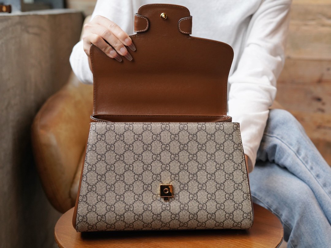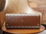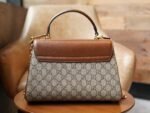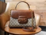 Horsebit 1955 Collection Tote is presented in beige and ebony GG Supreme canvas. Inspired by the brand’s equestrian roots, the design consists of two elements, the double ring and the long strip, which have become one of the brand’s most recognizable signature elements. Brown leather piping adds elegance to the design.