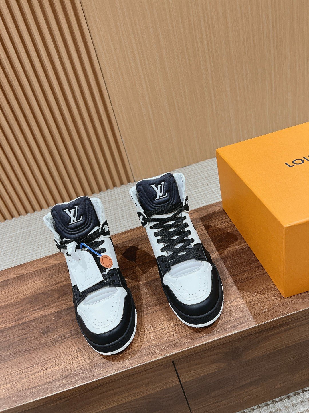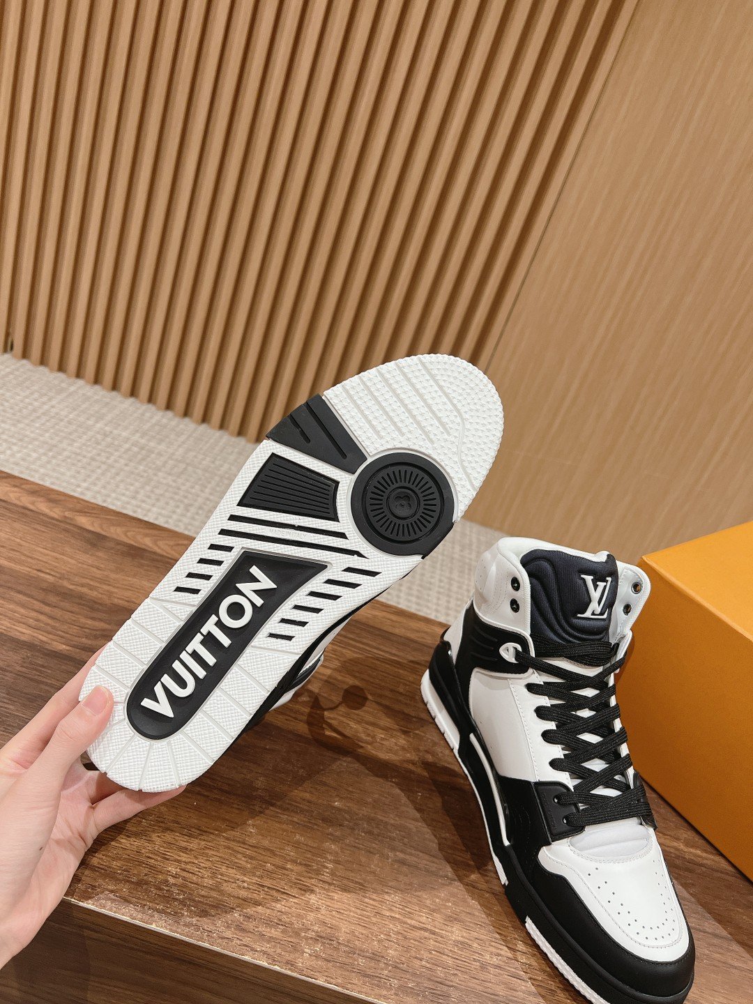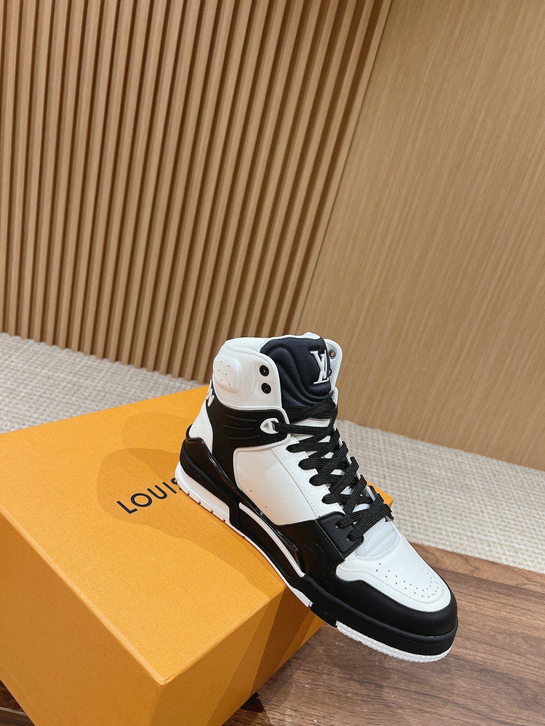 Home shoe LV Louis Vuitton ๐‹๐• ๐“๐ซ๐š๐ข๐ง๐ž๐ซ#High-top Louis Vuitton Runway New! Very comfortable on the foot Fine workmanship The upper is made of imported Italian calfskin splicing, the side is decorated with the brand LOGO logo and signature, cowhide cushion foot โž• mesh lining, the foot feels ultra-comfortable Original factory special original two-color TPU combination outsole set of package process Goodyear stitching lock edge nsize: 39-46 (45/46 customized non-returnable)
