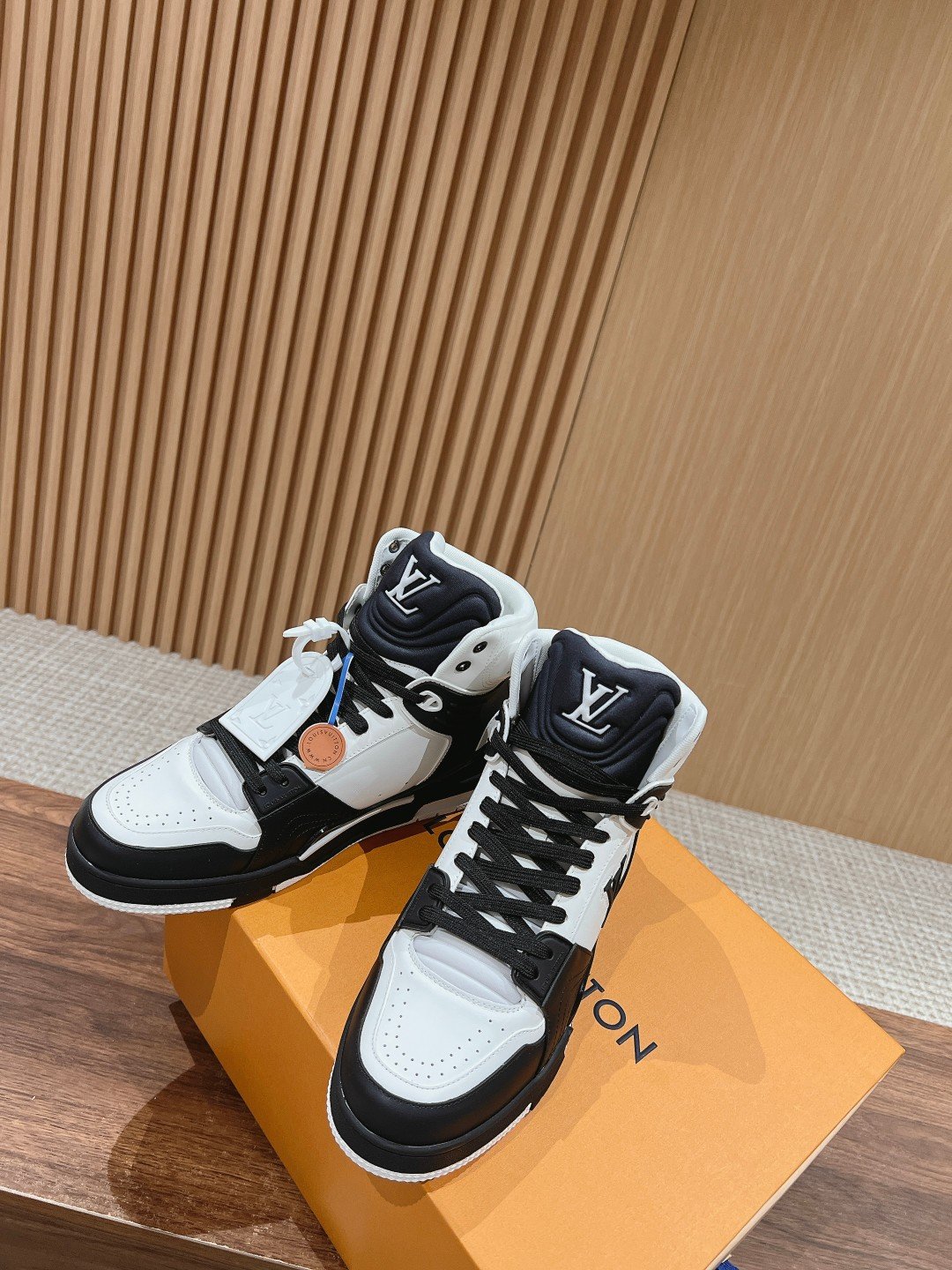 Be the first to review “๐‹๐• ๐“๐ซ๐š๐ข๐ง๐ž๐ซ#High-top Louis Vuitton Runway New! Very comfortable on the foot Fine workmanship The upper is made of imported Italian calfskin splicing, the side is decorated with the brand LOGO logo and signature, cowhide cushion foot โž• mesh lining, the foot feels ultra-comfortable Original factory special original two-color TPU combination outsole set of package process Goodyear stitching lock edge nsize: 39-46 (45/46 customized non-returnable)” Cancel reply