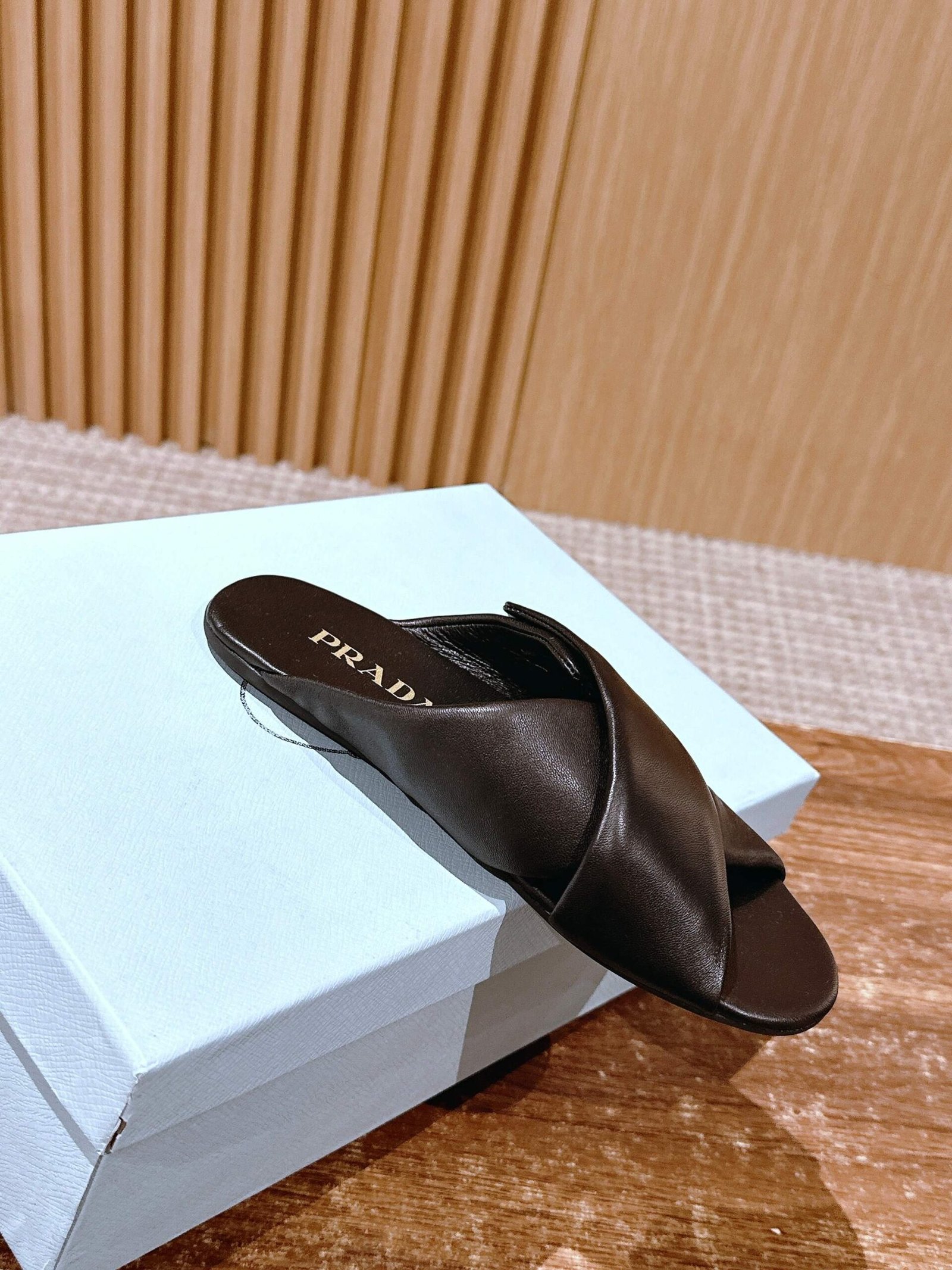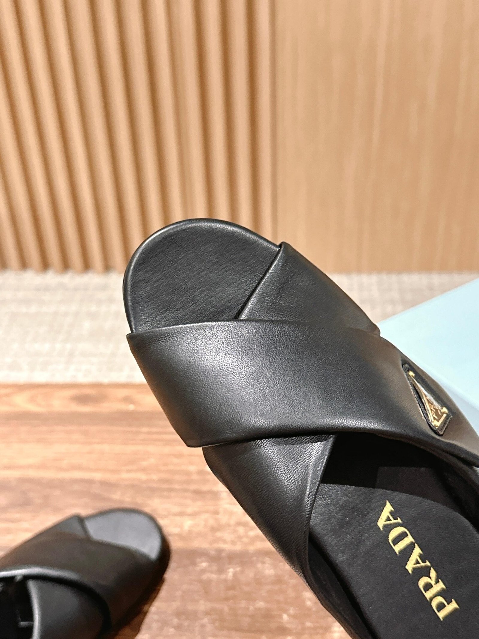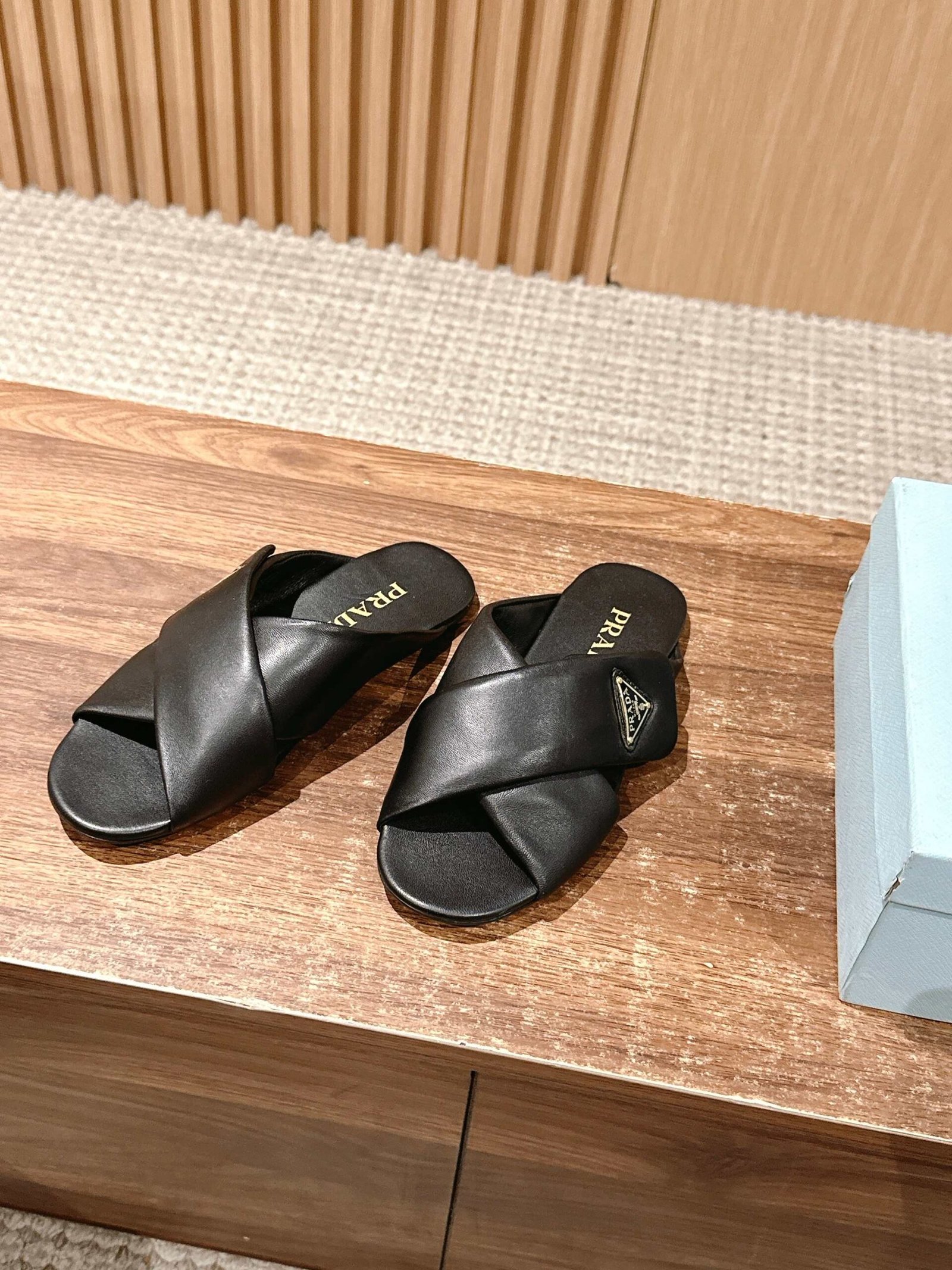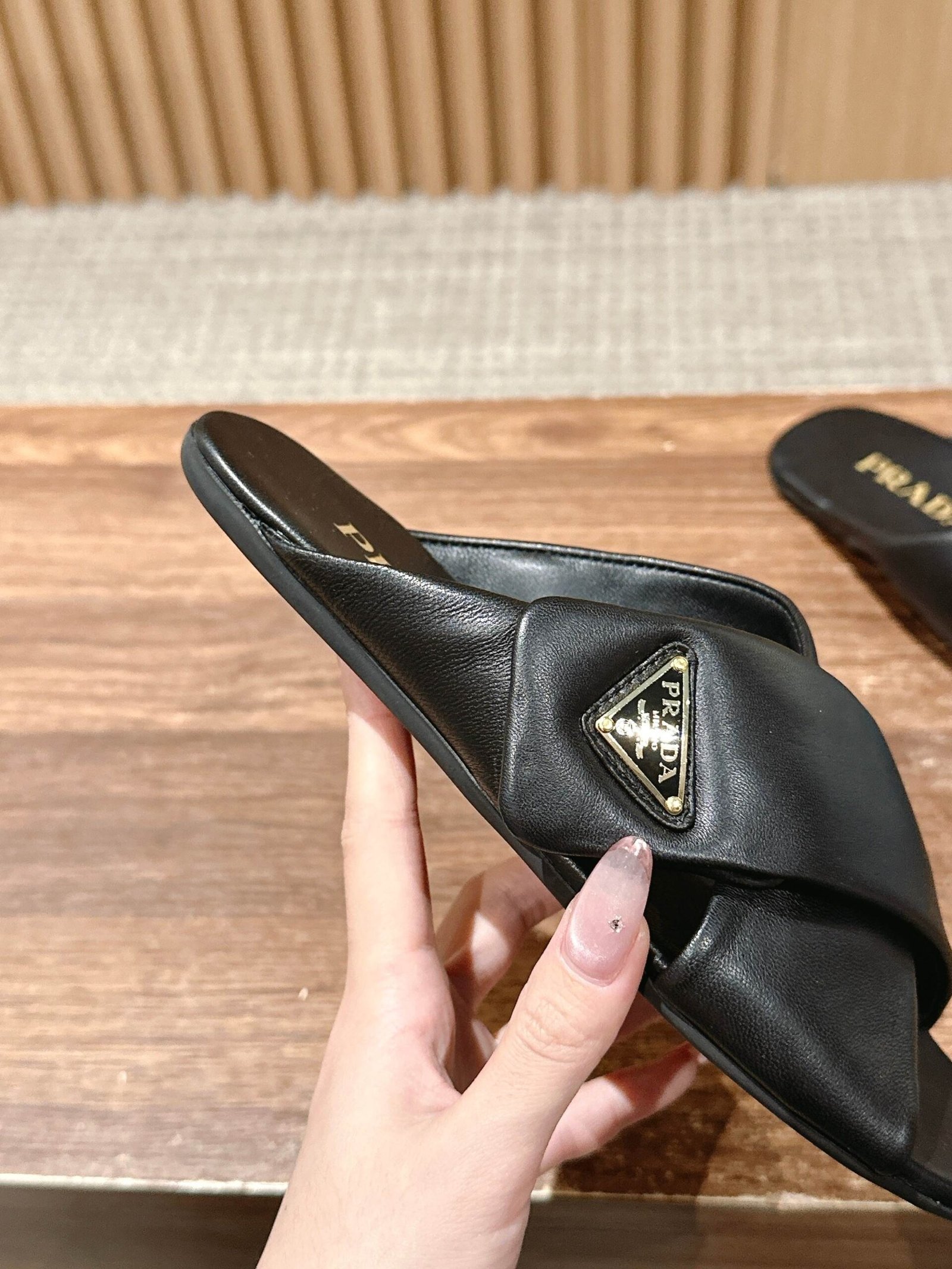 Home shoe PRADA ๐๐‘๐€๐ƒ๐€ ๐Ÿฎ๐Ÿฌ๐Ÿฎ๐Ÿฑ/ ๐ฌ๐ฌ Prada Spring and Summer New Flat Bottom Yang slope slippers Cross design, showing the simple style, the triangle label embellishment Advanced sense of pull full! Flat sole design, traveling comfort! Made of lambskin, gum sole Size: 35-39 (40/41 customized non-returnable)