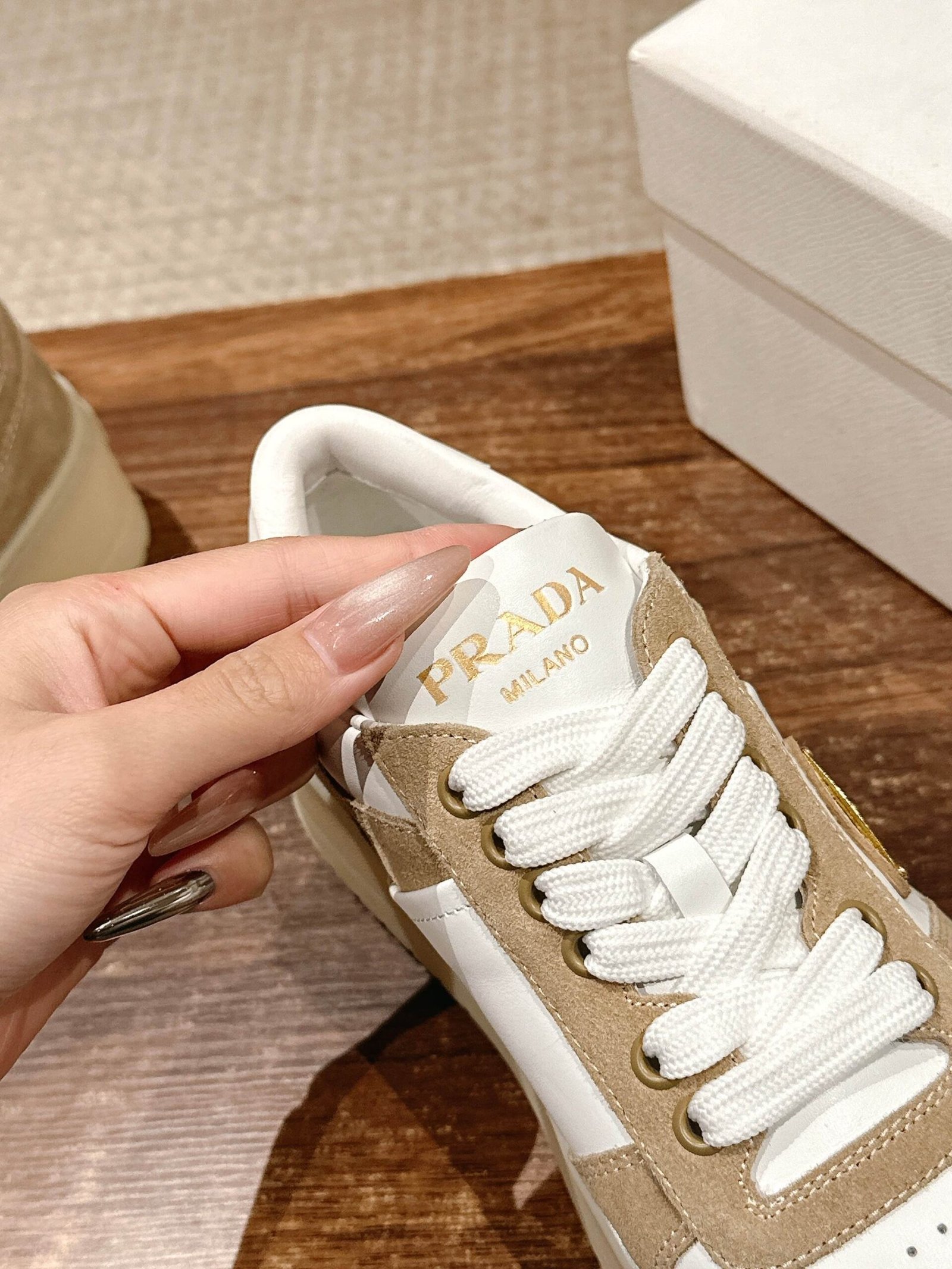 Be the first to review “𝐏𝐑𝐀𝐃𝐀 𝟮𝟬𝟮𝟱/ 𝐬𝐬# Spring and summer new △ triangle label thick bottom white shoes casual shoes nn Suede and glossy leather splicing collision color, the sense of detail with a good sense of Triangle label embellishment, simple and advanced! The key on the foot is super leg-length, easy to lengthen the legs to show legs! nnSize 35-39 (40/41 customized non-returnable)” Cancel reply