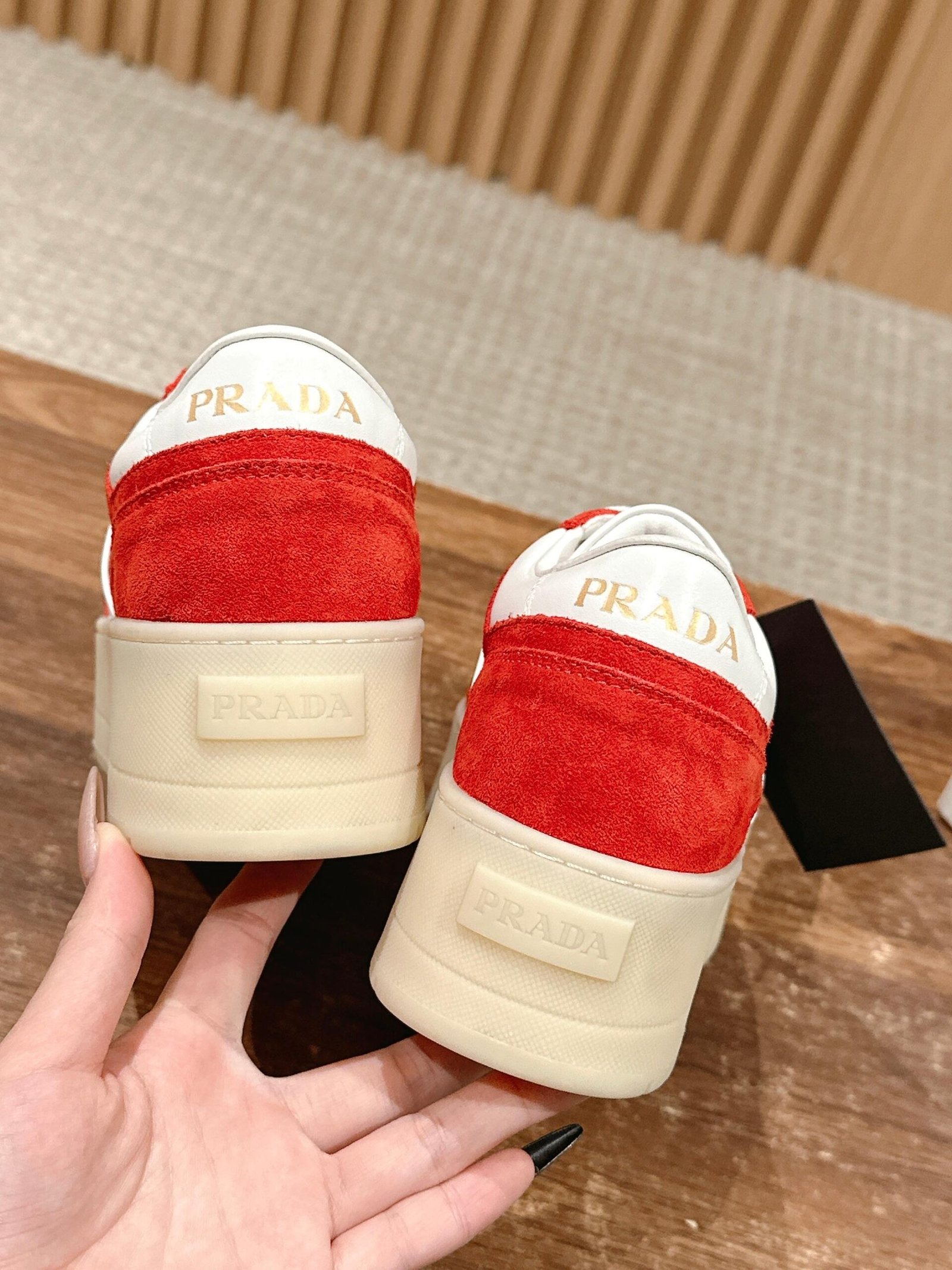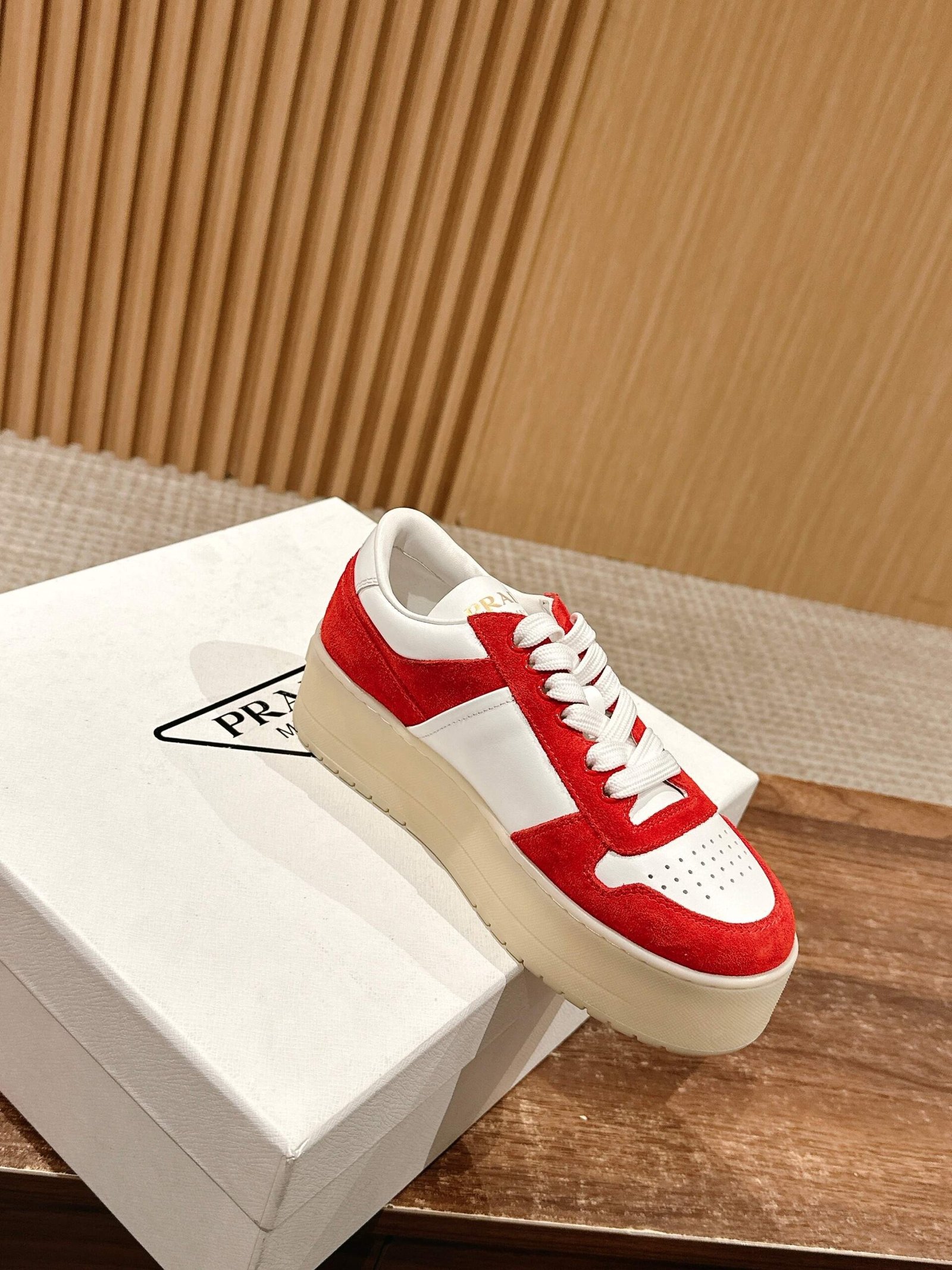 𝐏𝐑𝐀𝐃𝐀 𝟮𝟬𝟮𝟱/ 𝐬𝐬# Spring and summer new △ triangle label thick bottom white shoes casual shoes nn Suede and glossy leather splicing collision color, the sense of detail with a good sense of Triangle label embellishment, simple and advanced! The key on the foot is super leg-length, easy to lengthen the legs to show legs! nnSize 35-39 (40/41 customized non-returnable)