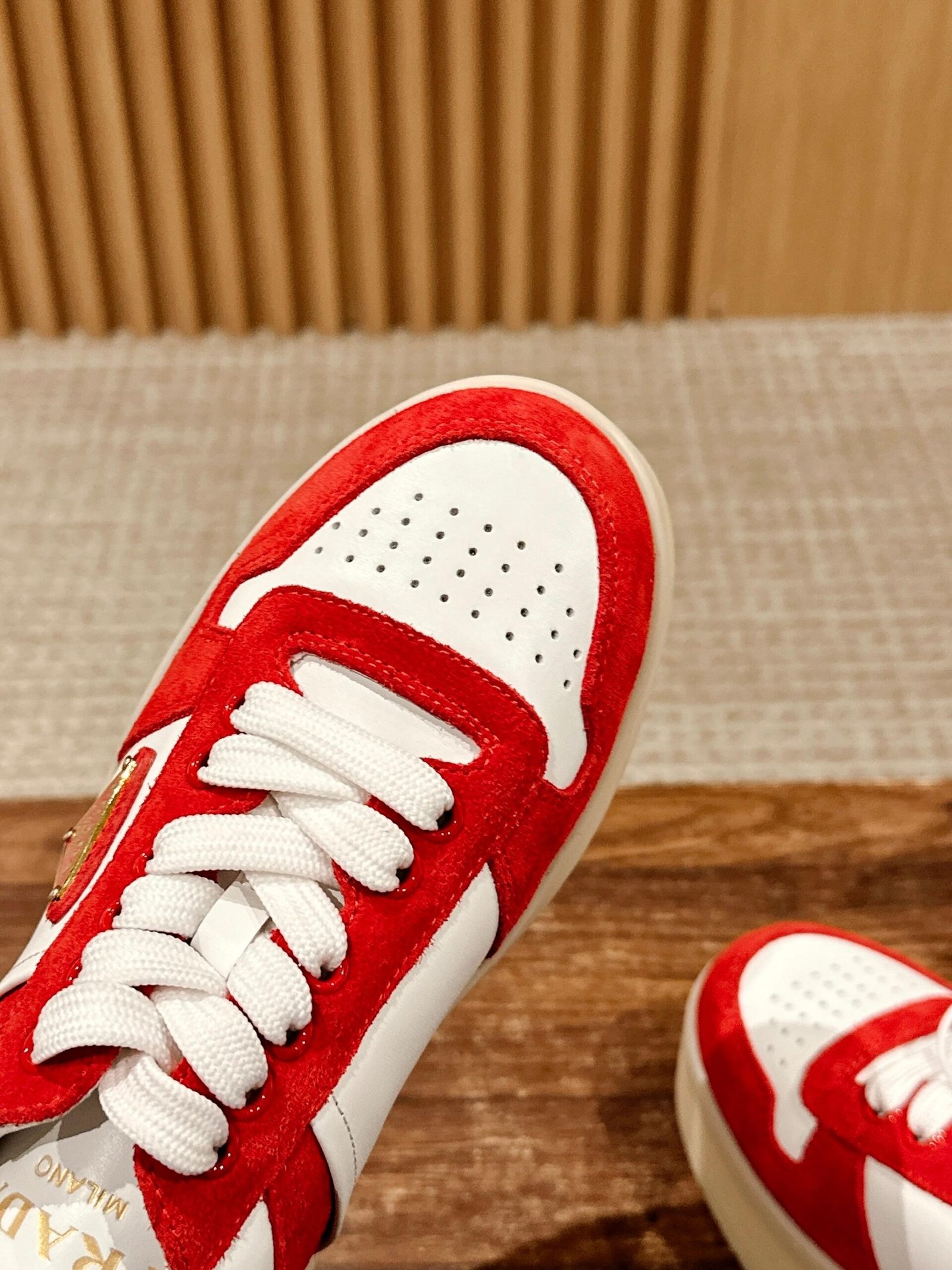 𝐏𝐑𝐀𝐃𝐀 𝟮𝟬𝟮𝟱/ 𝐬𝐬 Prada New Triangle Logo Sport Body Casual White Shoes Made of Litchi grain calf leather Lamb leather liningn Hot stamped embossed logo Consistent color matching painted enameled metal triangle logon2.5cm rubber outsole Size: 35-39 (40 customized non-returnable) $158.00