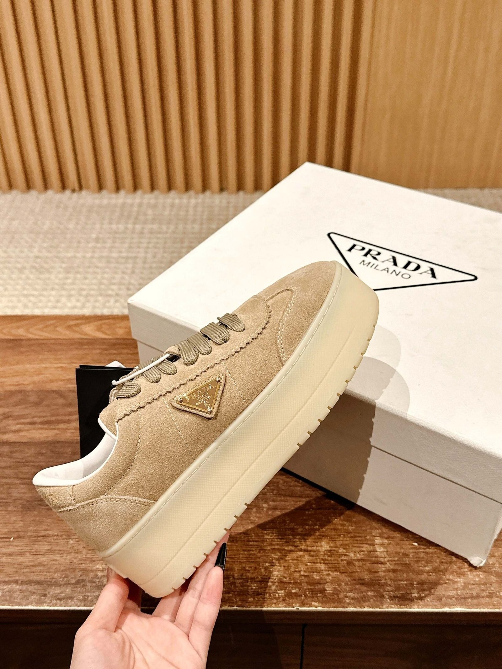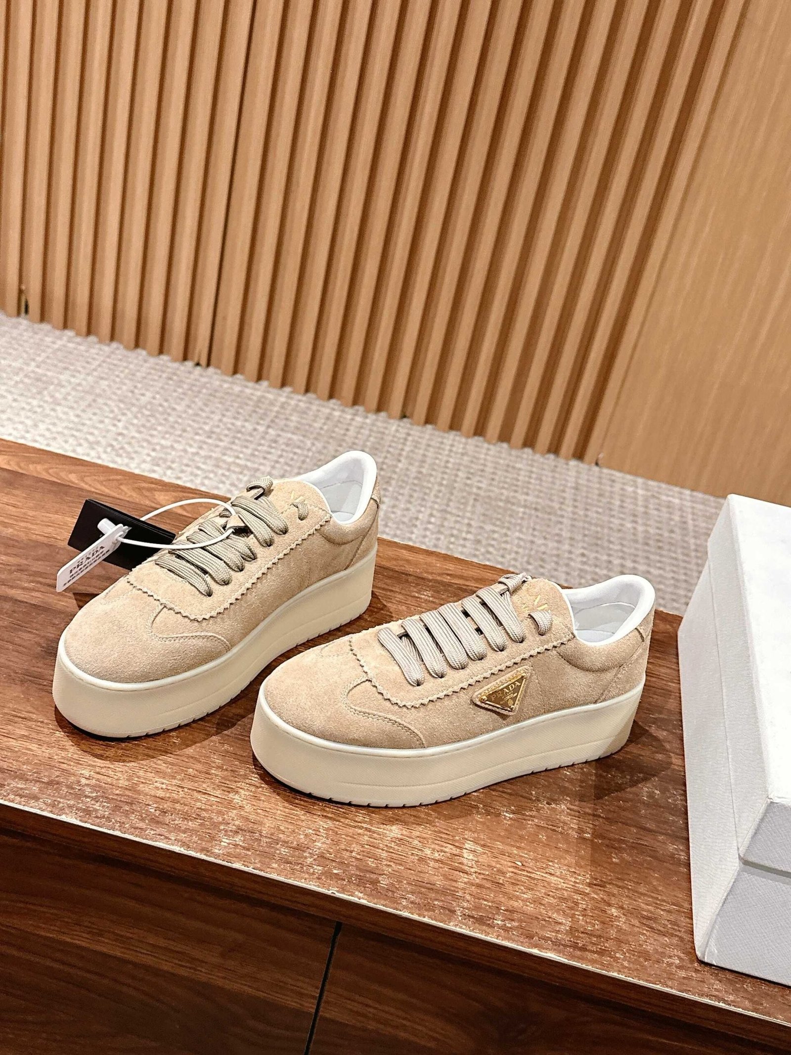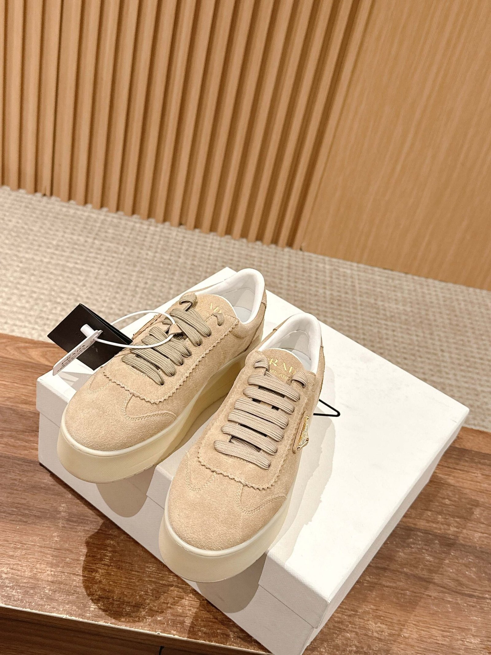 Be the first to review “𝐏𝐑𝐀𝐃𝐀 𝟮𝟬𝟮𝟱/ 𝐬𝐬# Spring and summer new △ triangle label thick bottom white shoes casual shoes nn Suede and glossy leather splicing collision color, the sense of detail with a good sense of Triangle label embellishment, simple and advanced! The key on the foot is super leg-length, easy to lengthen the legs to show legs! nnSize 35-39 (40/41 customized non-returnable)” Cancel reply