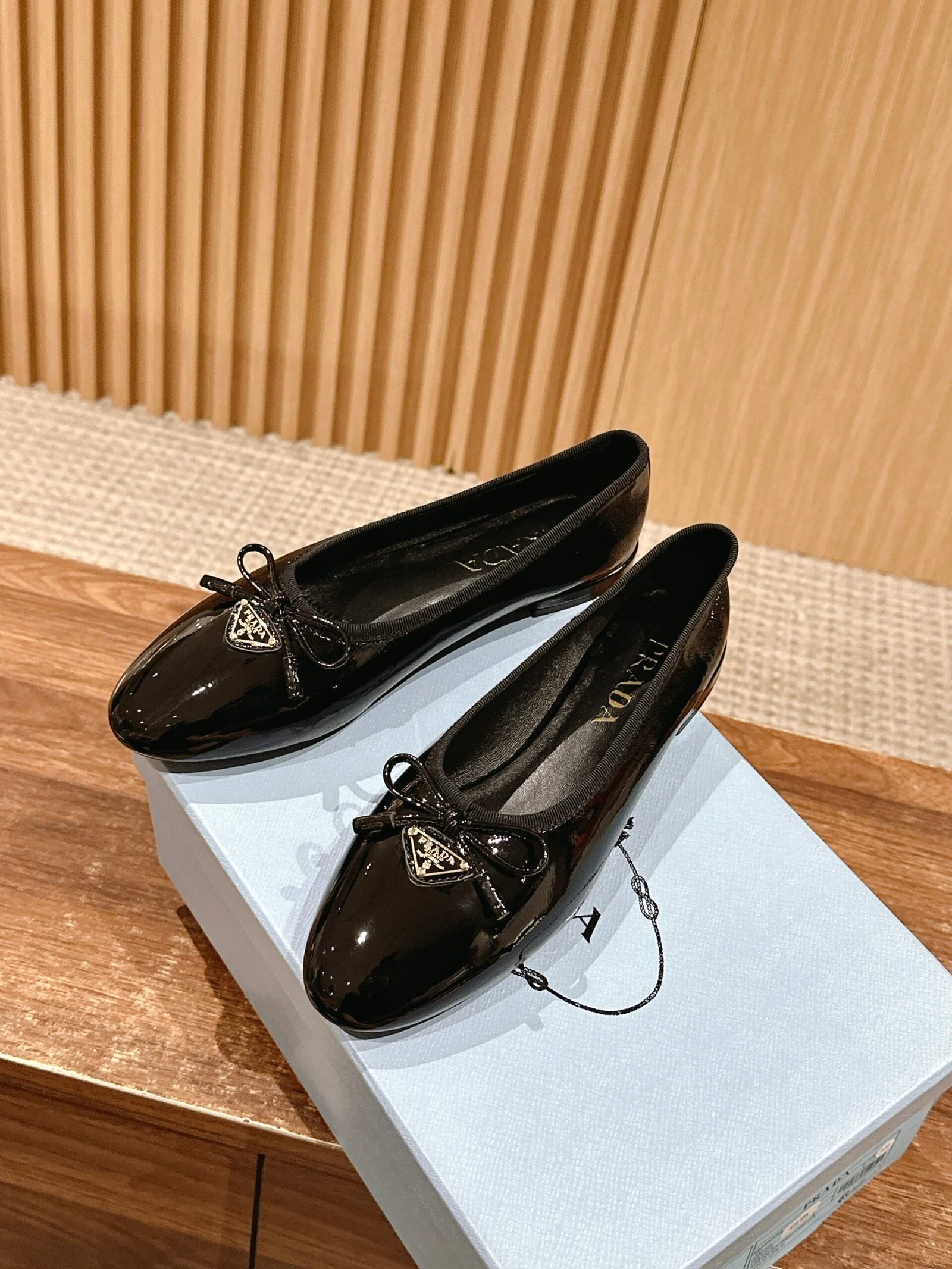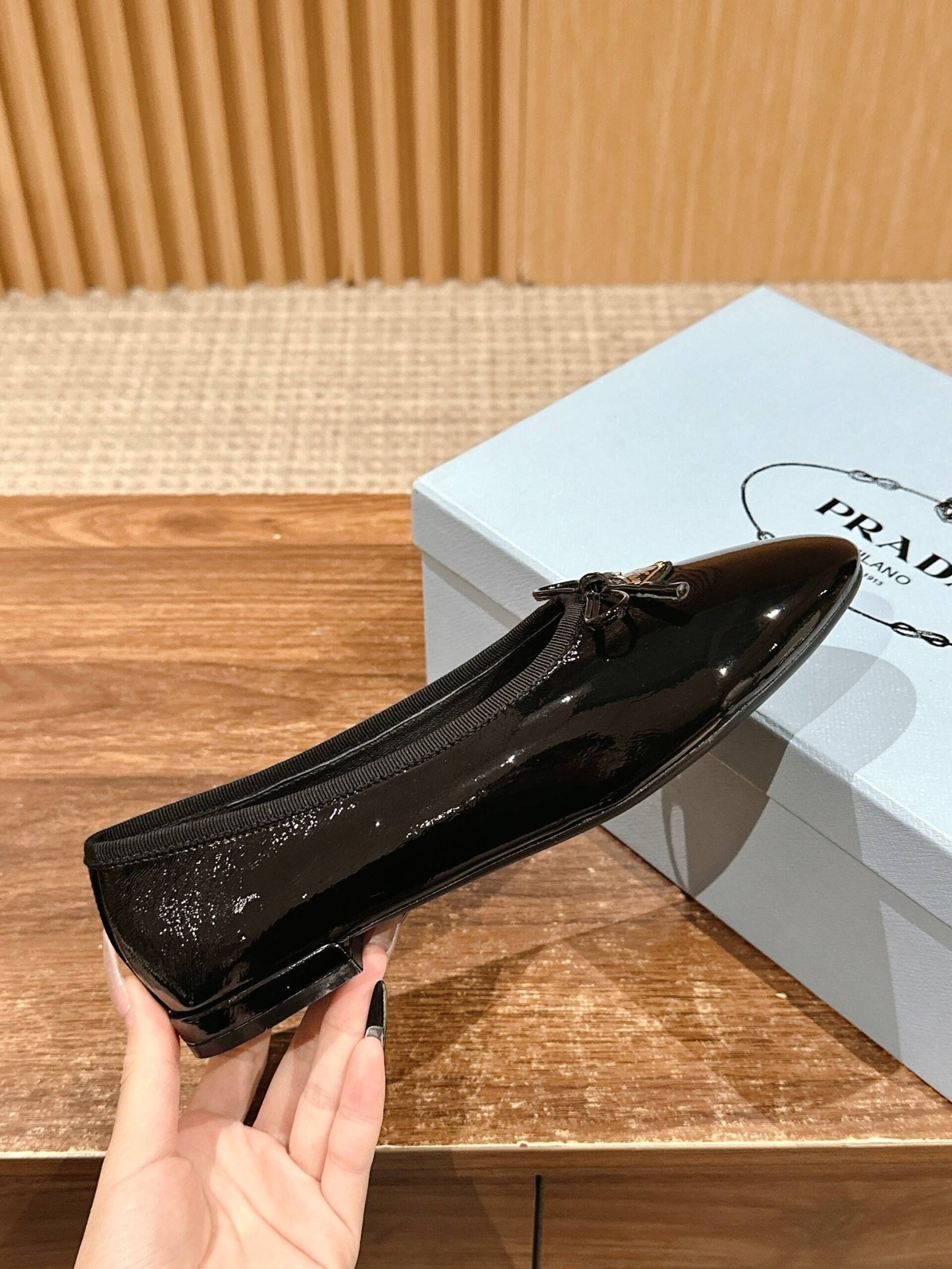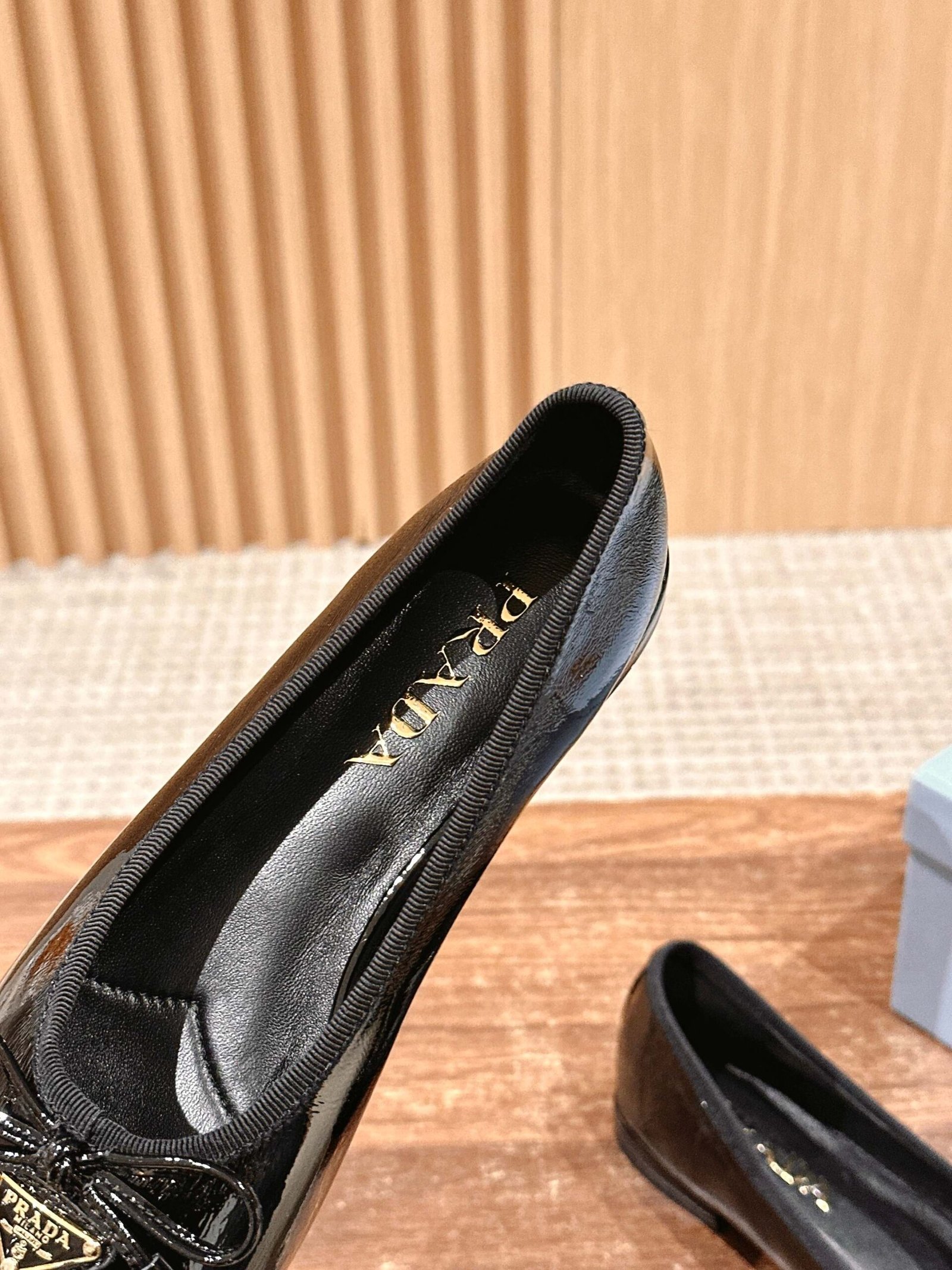 𝐏𝐑𝐀𝐃𝐀 Prada spring and summer new round head triangular label Mary Jane single shoes ballet flats nn fashionable versatile nice single product, all kinds of beautiful women to stand firm, exclusive on the new la! Like to wear high heels and afraid of tired sisters look over, flat bottom absolutely let the footsteps light, 100% not tired feet, on the foot steady ease! Wrinkled lacquered cowhide material Sheepskin lining TPU outsole nn Size: 35-39 (34/40 customized non-returnable)