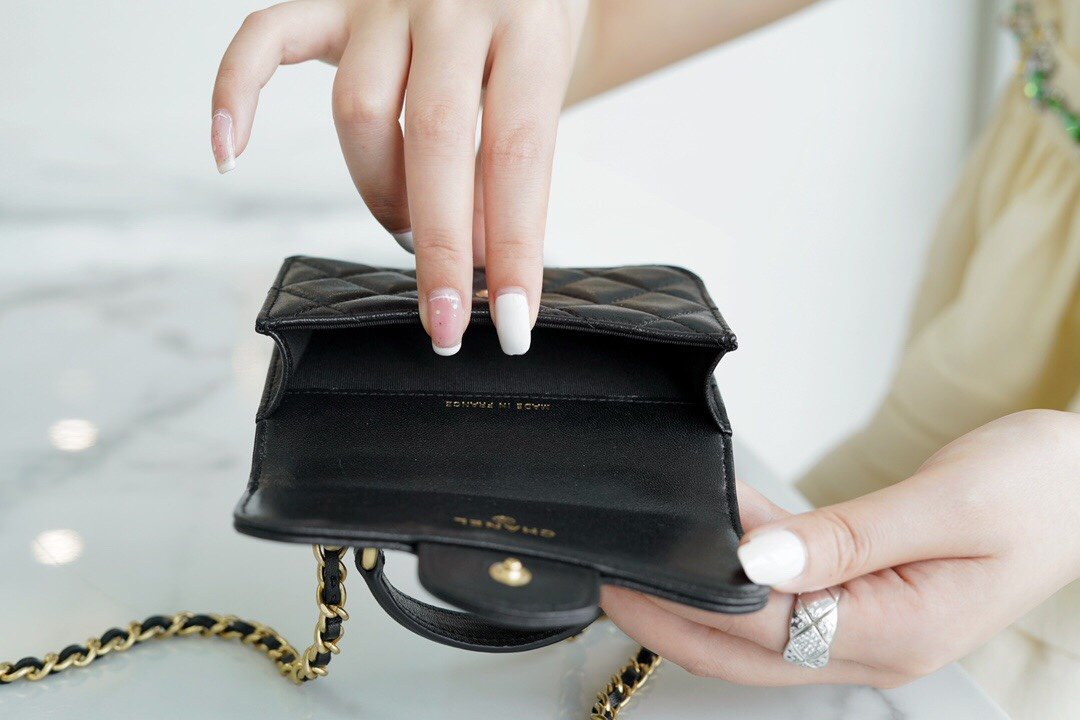 𝖢𝗁𝖺𝗇𝖾𝗅 ❥𝟚𝟘𝟚1 Haute Couture Handle Coin Purse Black