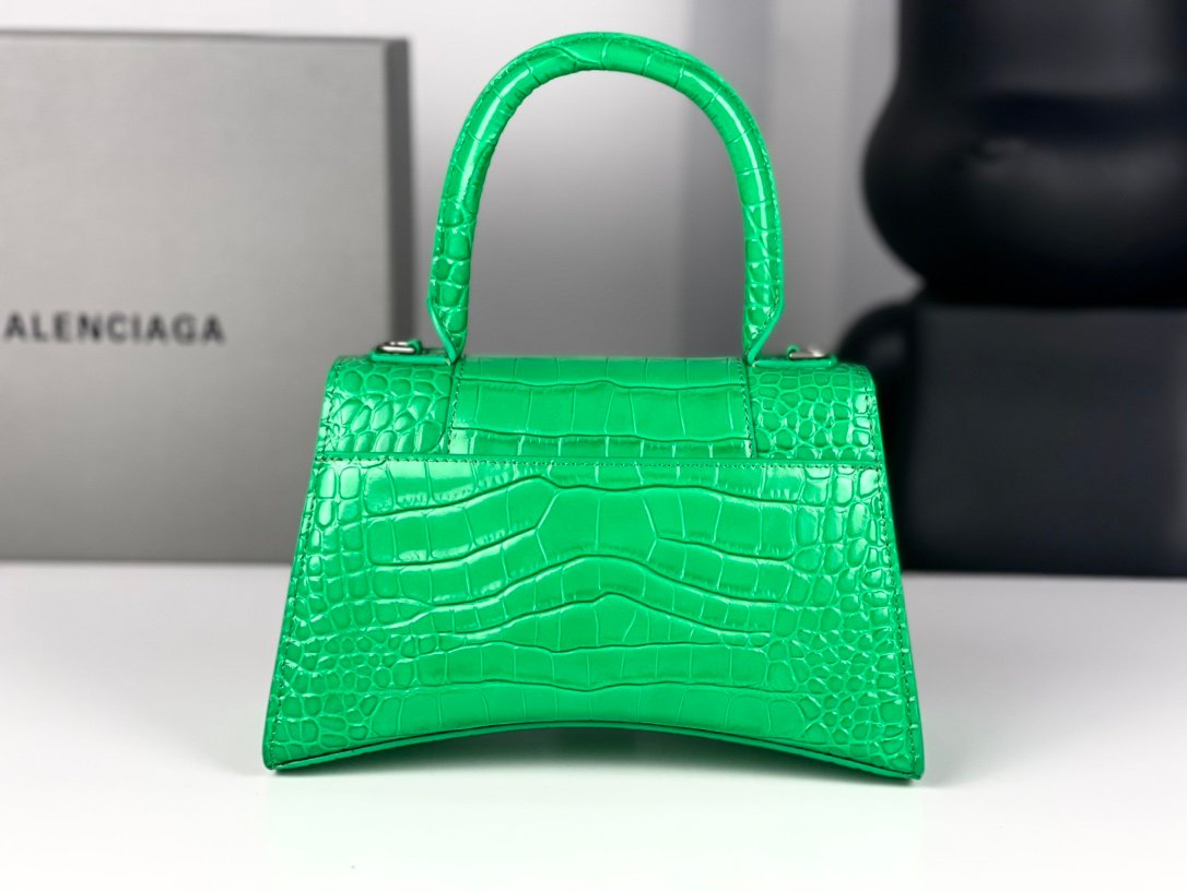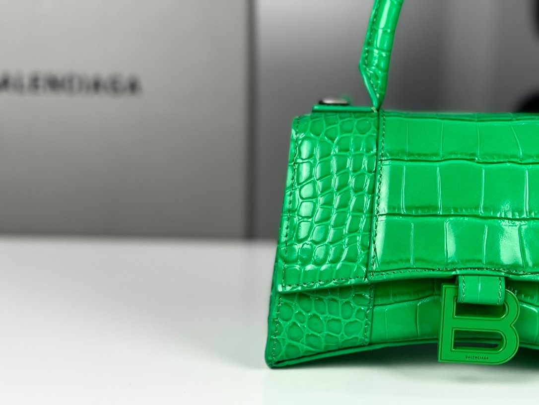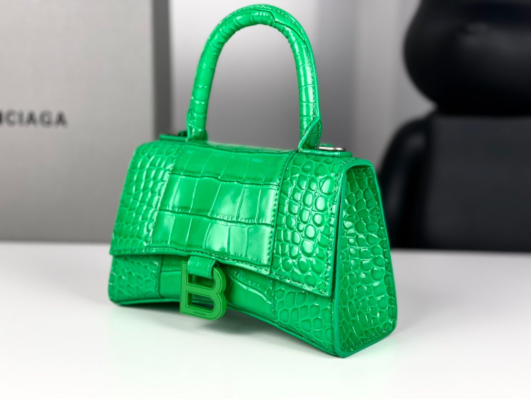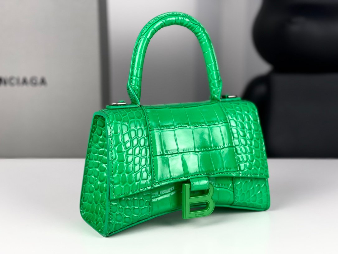 #𝗕𝗮𝗹𝗲𝗻𝗰𝗶𝗮𝗴 𝗮# Grass Green Green Buckle Crocodile Print n [Upgraded Original Leather Version] XS size – 1⃣️ 9⃣️cmn Original Leather Version 𝗛𝗼𝘂𝗿 𝗴𝗹𝗮𝘀𝘀 Hourglass bag New arrival! n🌟Made of original Italian cowhide leather, it feels great to the touch and shows off your taste at all times! n🌟 Imported bronze hardware! Super personalized B-shaped pull buckle, I give full marks to this design 💯, fashionable! Charming! n🌟 Unique iconic arc shape modeling is very recognizable, a glance makes people bright ah super cool! The appearance presents a round half-moon shape. n🌟 The inside of the bag is a large flat mouth, a zipper pocket inside, especially can be loaded! With lambskin lining, the loss is extremely high, the cost is extremely high! Do the best goods, waiting for the most knowledgeable you! n Model: 127 Crocodile Printnn XS size: 19x8x21cmn S size: 23x10x24cm