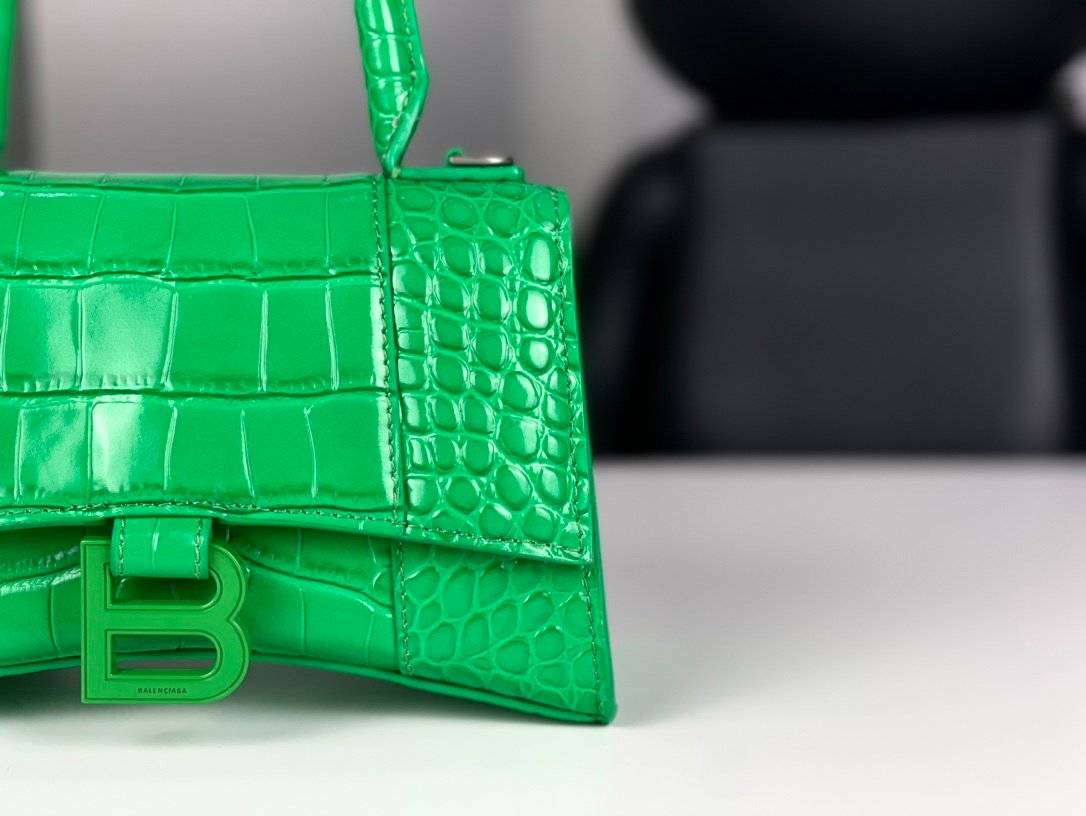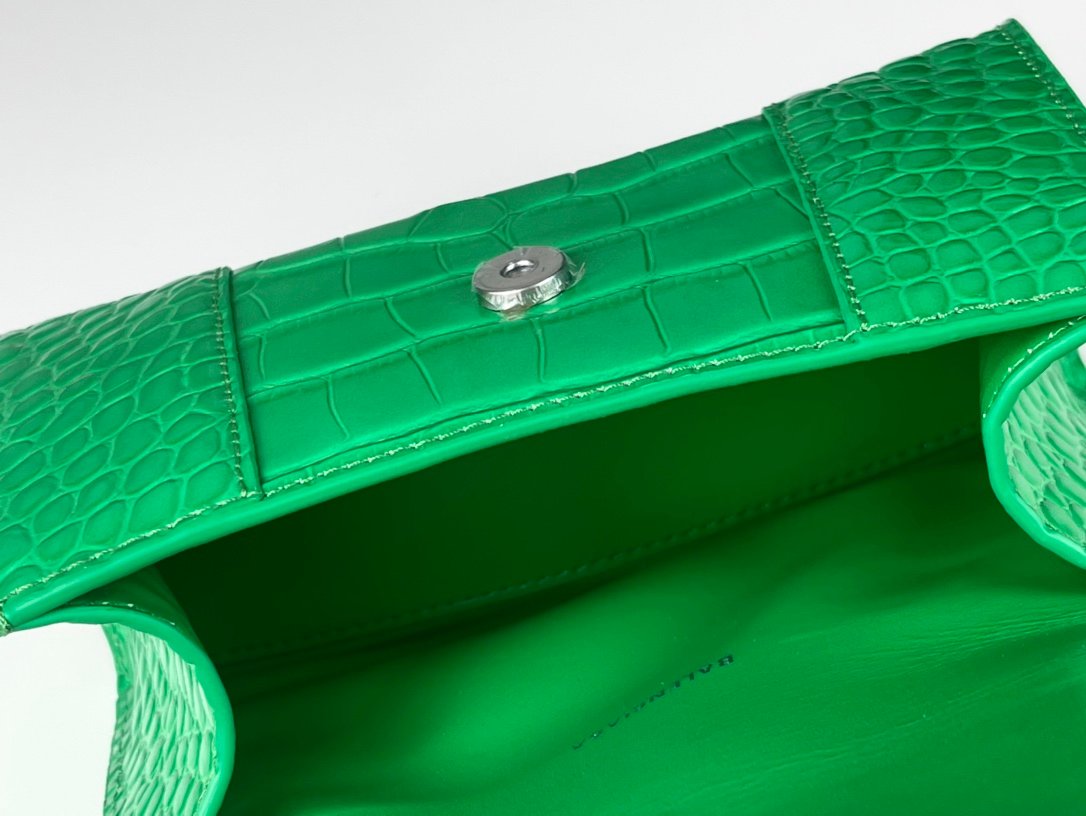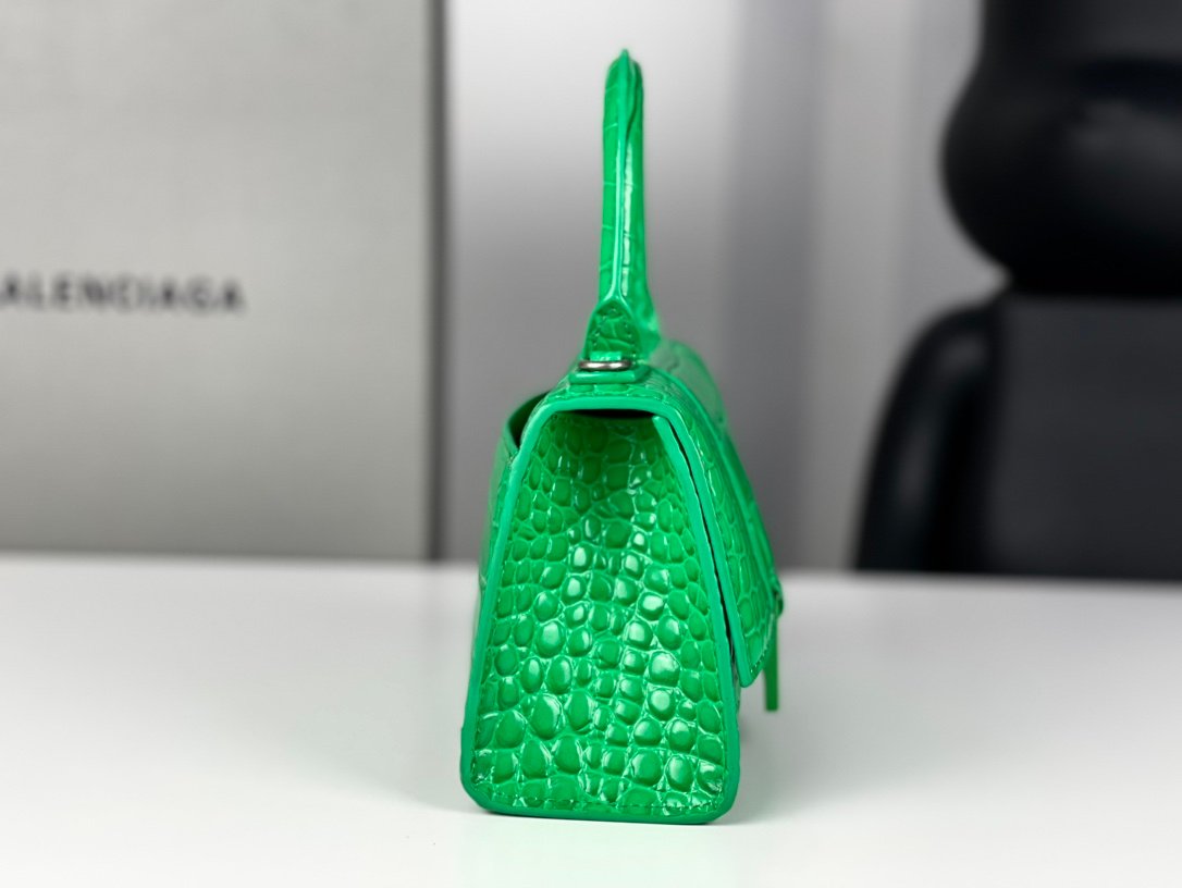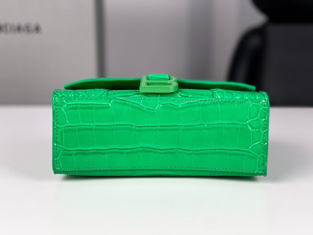 #𝗕𝗮𝗹𝗲𝗻𝗰𝗶𝗮𝗴 𝗮# Grass Green Green Buckle Crocodile Print n [Upgraded Original Leather Version] XS size – 1⃣️ 9⃣️cmn Original Leather Version 𝗛𝗼𝘂𝗿 𝗴𝗹𝗮𝘀𝘀 Hourglass bag New arrival! n🌟Made of original Italian cowhide leather, it feels great to the touch and shows off your taste at all times! n🌟 Imported bronze hardware! Super personalized B-shaped pull buckle, I give full marks to this design 💯, fashionable! Charming! n🌟 Unique iconic arc shape modeling is very recognizable, a glance makes people bright ah super cool! The appearance presents a round half-moon shape. n🌟 The inside of the bag is a large flat mouth, a zipper pocket inside, especially can be loaded! With lambskin lining, the loss is extremely high, the cost is extremely high! Do the best goods, waiting for the most knowledgeable you! n Model: 127 Crocodile Printnn XS size: 19x8x21cmn S size: 23x10x24cm