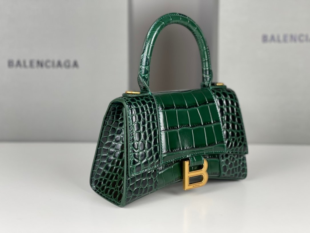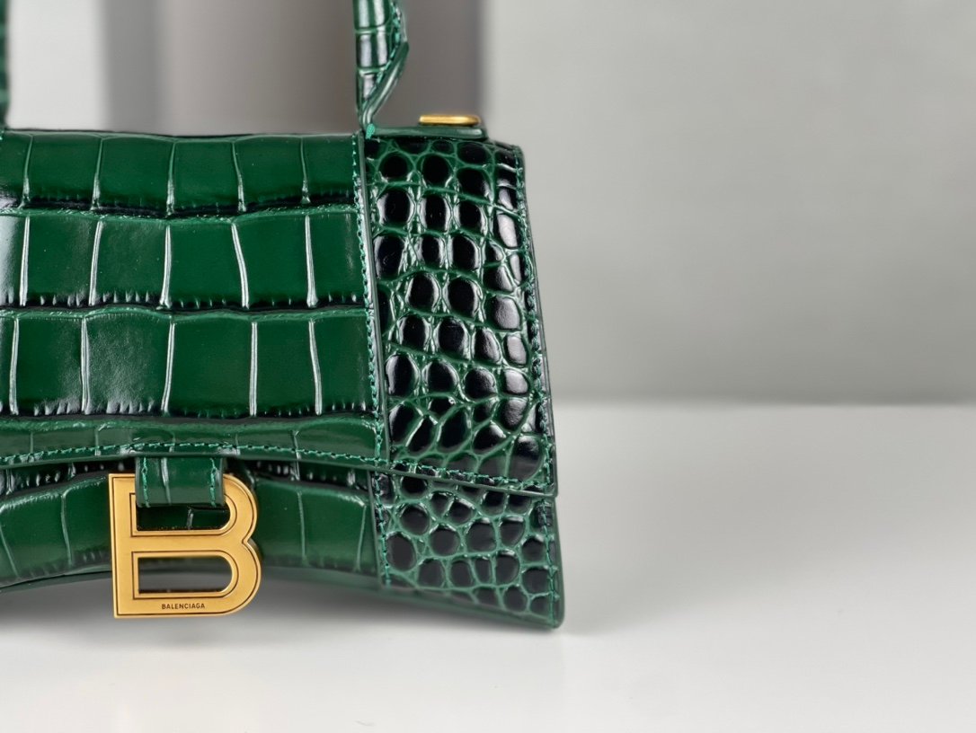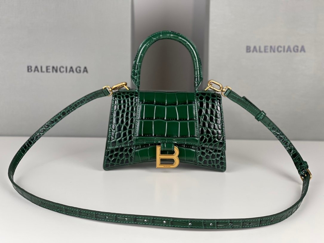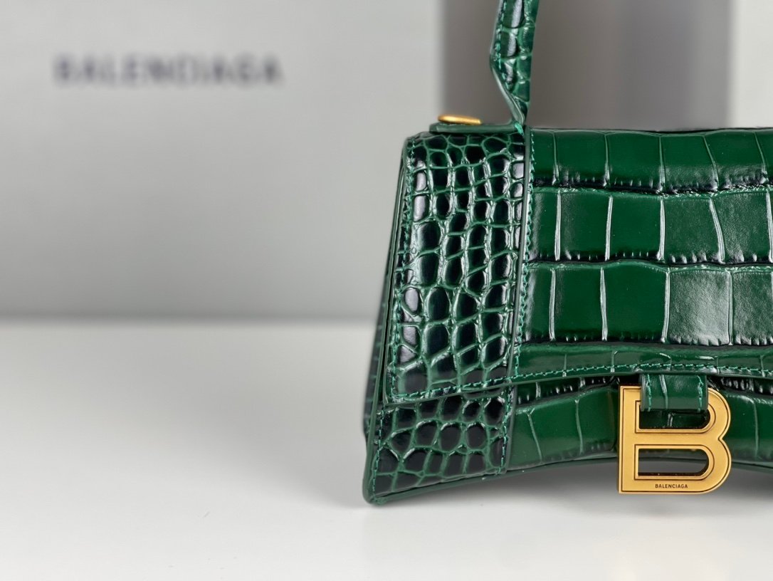 #𝗕𝗮𝗹𝗲𝗻𝗰𝗶𝗮𝗴 𝗮#Crocodile Print/dark greenn [Upgraded Original Leather Version] XS size – 1⃣️ 9⃣️cmn Original Leather Version 𝗛𝗼𝘂𝗿 𝗴𝗹𝗮𝘀𝘀 Hourglass bag New arrival! n🌟Made of original Italian cowhide leather, it feels great to the touch and shows off your taste at all times! n🌟 Imported bronze hardware! Super personalized B-shaped pull buckle, I give full marks to this design 💯, fashionable! Charming! n🌟 Unique iconic arc shape modeling is very recognizable, a glance makes people bright ah super cool! The appearance presents a round half-moon shape. n🌟 The inside of the bag is a large flat mouth, a zipper pocket inside, especially can be loaded! With lambskin lining, the loss is extremely high, the cost is extremely high! Do the best goods, waiting for the most knowledgeable you! n Model: 127 Crocodile Printnn XS size: 19x8x21cmn S size: 23x10x24cm