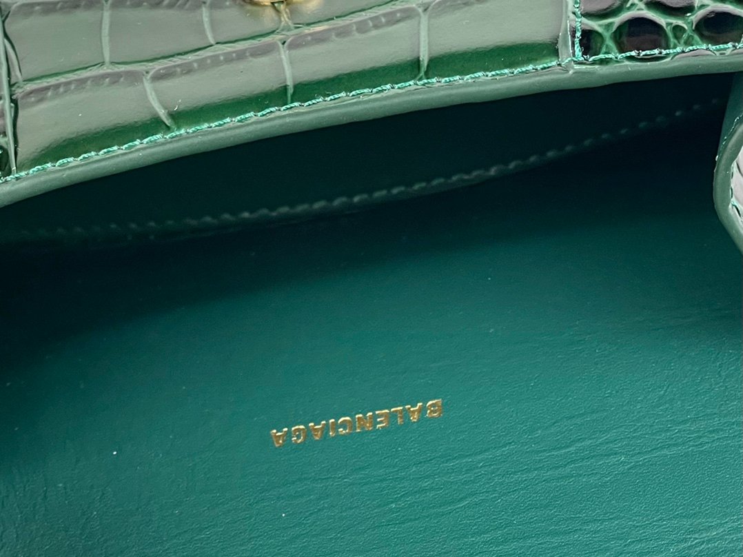 Home BAGS BALENCIAGA #𝗕𝗮𝗹𝗲𝗻𝗰𝗶𝗮𝗴 𝗮#Crocodile Print/dark greenn [Upgraded Original Leather Version] XS size – 1⃣️ 9⃣️cmn Original Leather Version 𝗛𝗼𝘂𝗿 𝗴𝗹𝗮𝘀𝘀 Hourglass bag New arrival! n🌟Made of original Italian cowhide leather, it feels great to the touch and shows off your taste at all times! n🌟 Imported bronze hardware! Super personalized B-shaped pull buckle, I give full marks to this design 💯, fashionable! Charming! n🌟 Unique iconic arc shape modeling is very recognizable, a glance makes people bright ah super cool! The appearance presents a round half-moon shape. n🌟 The inside of the bag is a large flat mouth, a zipper pocket inside, especially can be loaded! With lambskin lining, the loss is extremely high, the cost is extremely high! Do the best goods, waiting for the most knowledgeable you! n Model: 127 Crocodile Printnn XS size: 19x8x21cmn S size: 23x10x24cm