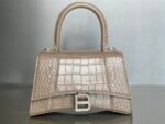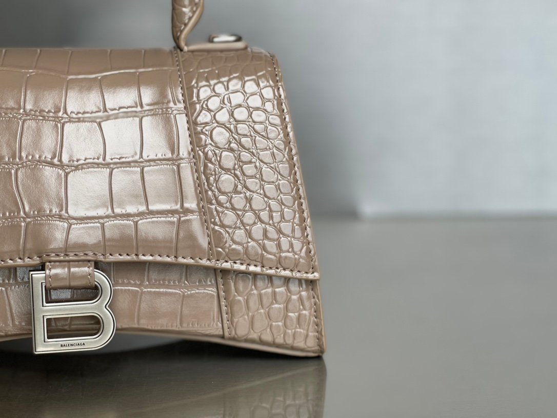 #𝗕𝗮𝗹𝗲𝗻𝗰𝗶𝗮𝗴 𝗮#Khaki Crocodile Printn [Upgraded Original Leather Version] Size S – 2⃣️ 3⃣️cmn Original Leather Version 𝗛𝗼𝘂𝗿 𝗴𝗹𝗮𝘀𝘀 Hourglass bag New arrival! n🌟Made of original Italian cowhide leather, it feels great to the touch and shows off your taste at all times! n🌟 Imported bronze hardware! Super personalized B-shaped pull buckle, I give full marks to this design 💯, fashionable! Charming! n🌟 Unique iconic arc shape modeling is very recognizable, a glance makes people bright ah super cool! The appearance presents a round half-moon shape. n🌟 The inside of the bag is a large flat mouth, a zipper pocket inside, especially can be loaded! With lambskin lining, the loss is extremely high, the cost is extremely high! Do the best goods, waiting for the most knowledgeable you! n Model: 127 Crocodile Printnn XS size: 19x8x21cmn S size: 23x10x24cm
