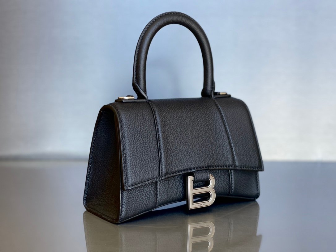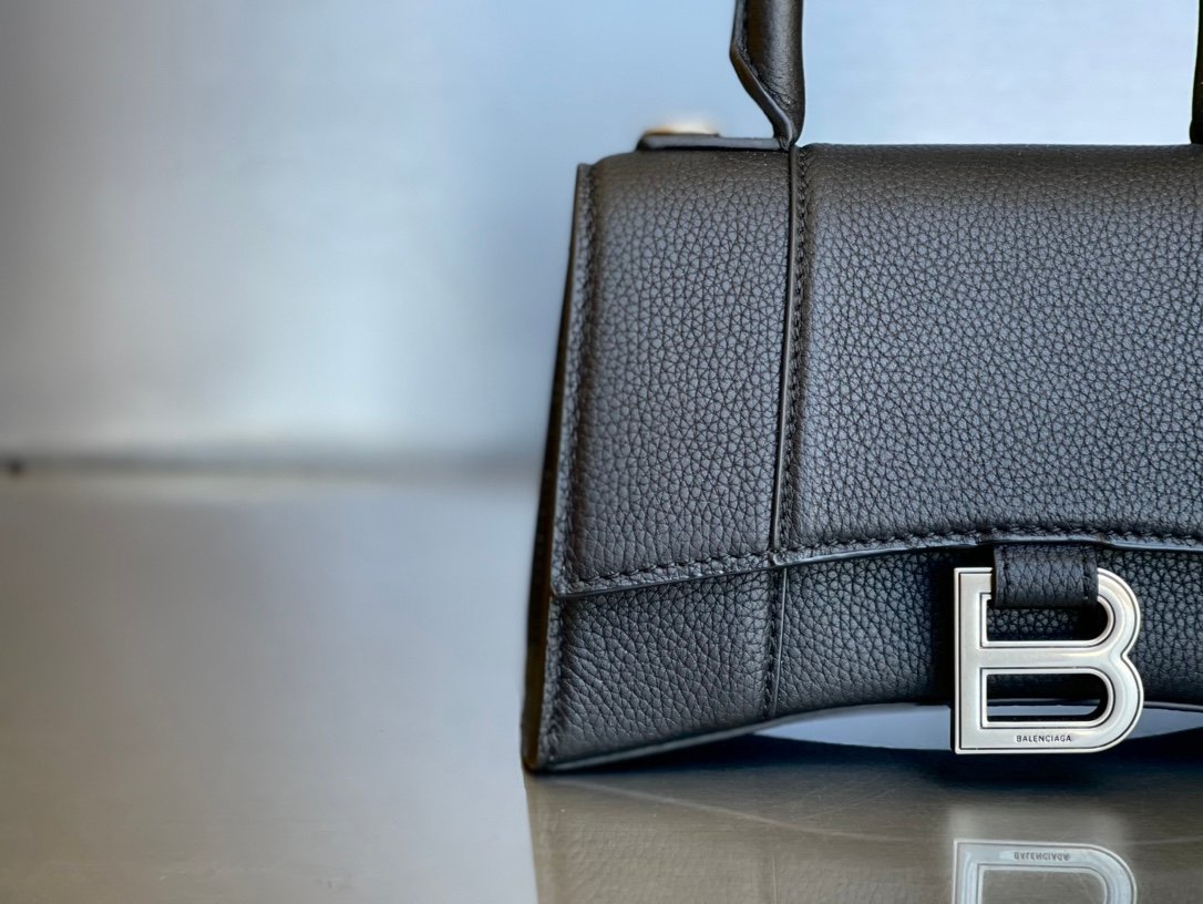 #𝗕𝗮𝗹𝗲𝗻𝗰𝗶𝗮𝗴 𝗮# Lychee Pattern Blackn [Upgraded Original Leather Version] Size S - 23cmn Lychee Pattern Original Leather Version 𝗛𝗼𝘂𝗿 𝗴𝗹𝗮𝘀𝘀 Hourglass bag New arrival! n🌟Made of original Italian cowhide leather, clear grain, excellent touch, always show your taste! n🌟 Imported bronze hardware! Super personalized B-shaped pull buckle, I give full marks to this design 💯, fashionable! Charming! n🌟 Unique iconic arc shape modeling is very recognizable, a glance makes people bright ah super cool! The appearance presents a round half-moon shape. n🌟 The inside of the bag is a large flat mouth, a zipper pocket inside, especially can be loaded! With lambskin lining, the loss is extremely high, the cost is extremely high! Do the best goods, waiting for the most knowledgeable you! n Model: 127 Lychee grain n Small: 19x8x21cm n Medium: 23x10x24cm $193.00