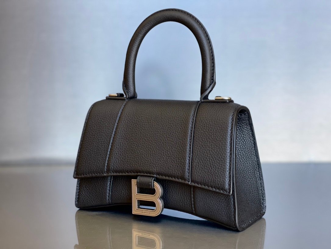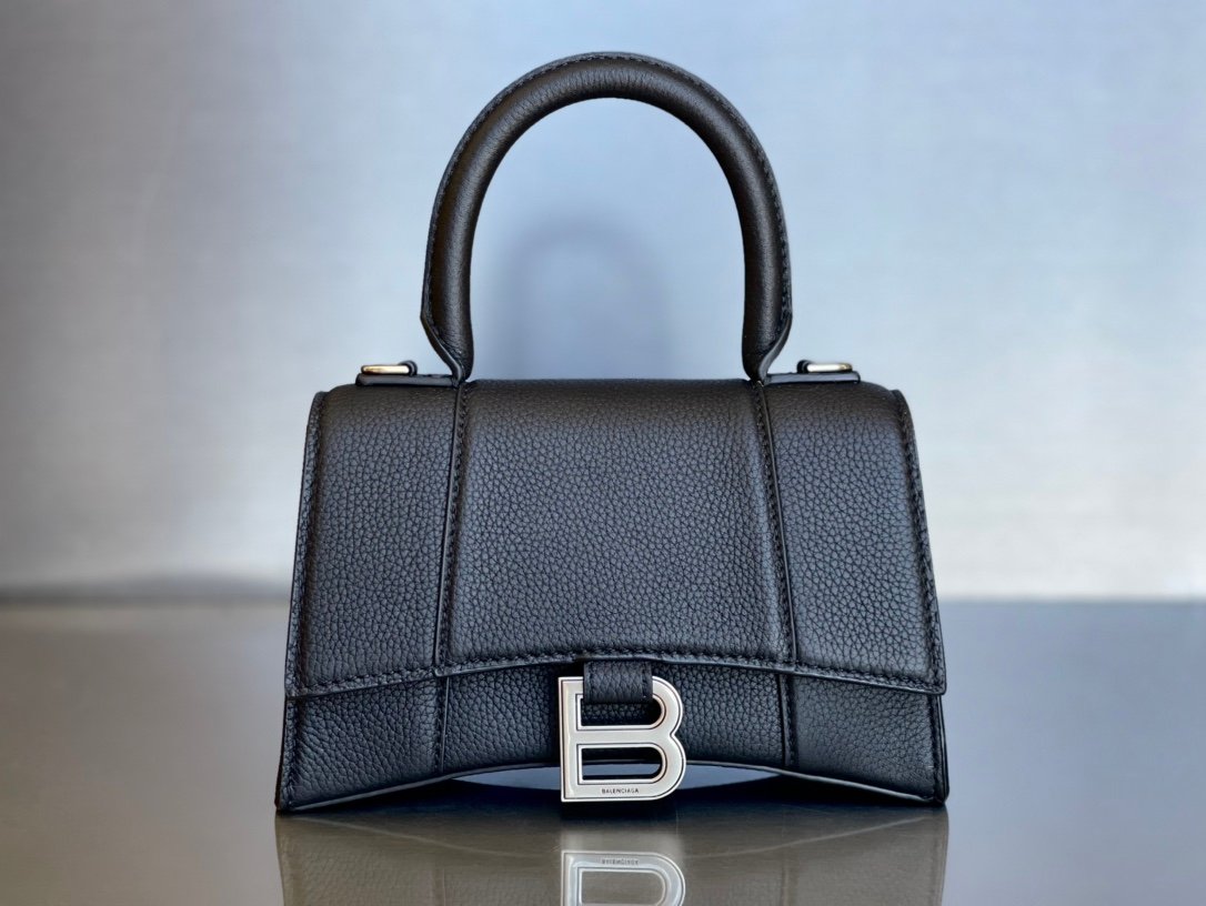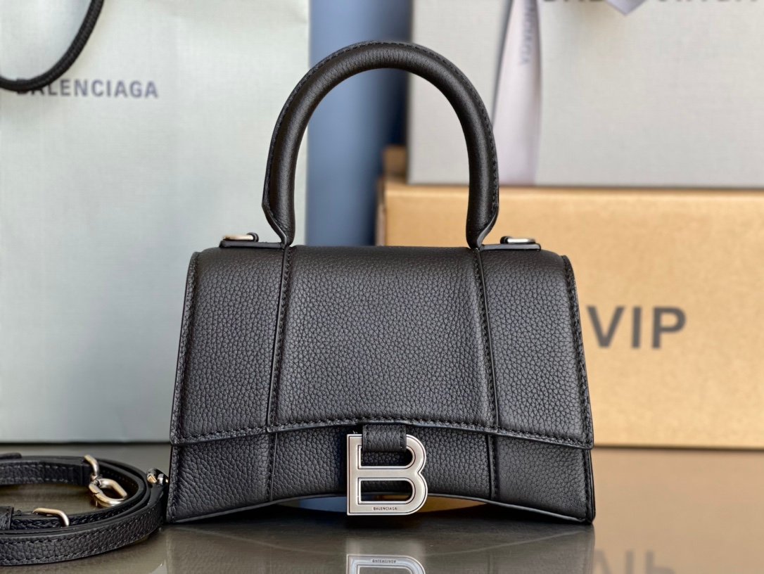 #𝗕𝗮𝗹𝗲𝗻𝗰𝗶𝗮𝗴 𝗮#Lychee Pattern Blackn [Upgraded Original Leather Version] XS size – 19cmn Lychee Pattern Original Leather Version 𝗛𝗼𝘂𝗿 𝗴𝗹𝗮𝘀𝘀 Hourglass bag New arrival! n🌟Made of original Italian cowhide leather, clear grain, excellent touch, always show your taste! n🌟 Imported bronze hardware! Super personalized B-shaped pull buckle, I give full marks to this design 💯, fashionable! Charming! n🌟 Unique iconic arc shape modeling is very recognizable, a glance makes people bright ah super cool! The appearance presents a round half-moon shape. n🌟 The inside of the bag is a large flat mouth, a zipper pocket inside, especially can be loaded! With lambskin lining, the loss is extremely high, the cost is extremely high! Do the best goods, waiting for the most knowledgeable you! n Model: 127 Lychee grain n Small: 19x8x21cm n Medium: 23x10x24cm