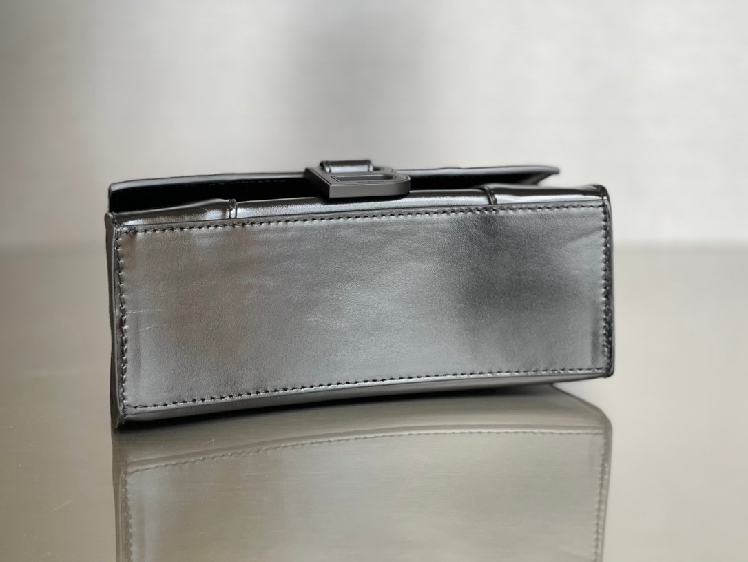 𝗕𝗮𝗹𝗲𝗻𝗰𝗰𝗶𝗮𝗴𝗮 #Plain Gray/Silver Bucklen [Upgraded Original Leather Version] Size S - 23cmn Original Leather Version 𝗛𝗼𝘂𝗿𝗴 𝗹𝗮𝘀𝘀 Hourglass bag New arrival! n🌟 Made from original Italian cowhide leather, it feels great to the touch and shows off your taste at all times! n🌟 Imported bronze hardware! Super personalized B-shaped pull buckle, I give full marks to this design 💯, fashionable! Charming! n🌟 Unique iconic arc shape modeling is very recognizable, a glance makes people bright ah super cool! The appearance presents a round half-moon shape. n🌟 The inside of the bag is a large flat mouth, a zipper pocket inside, especially can be loaded! With lambskin lining, the loss is extremely high, the cost is extremely high! Do the best goods, waiting for the most knowledgeable you! n Model: 127 Plain nn XS size: 19x8x21cmn S size: 23x10x24cm $193.00