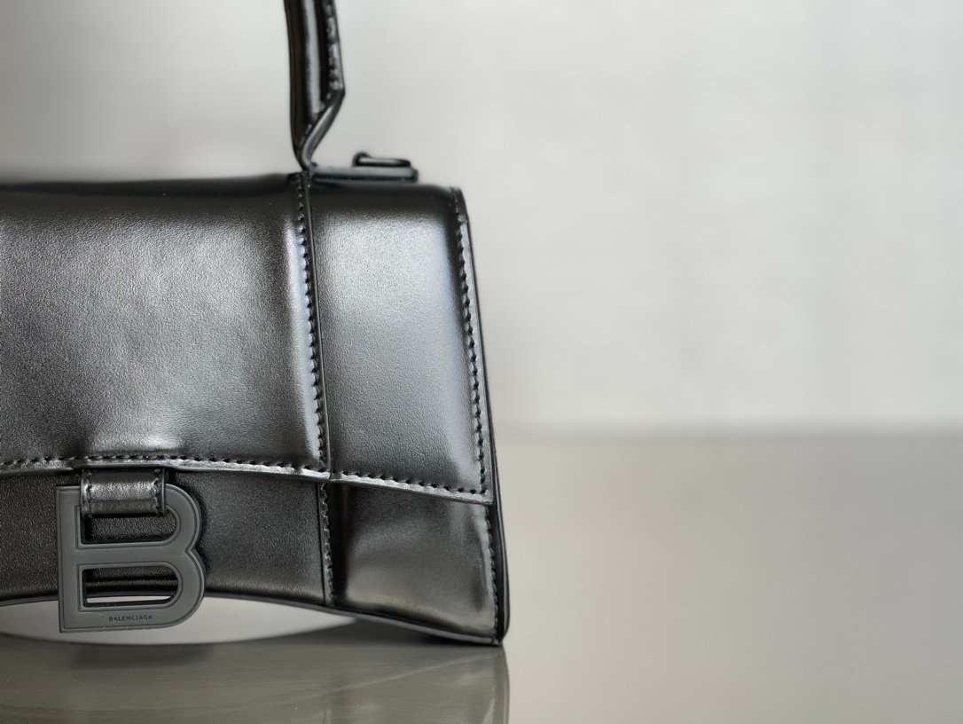 Home BAGS BALENCIAGA #𝗕𝗮𝗹𝗲𝗻𝗰𝗶𝗮𝗴 𝗮#Plain Black/Black Bucklen [Upgraded Original Leather Version] Size XS – 19cmn Crocodile Pattern Original Leather Version 𝗛𝗼𝘂𝗿 𝗴𝗹𝗮𝘀𝘀 Hourglass bag New arrival! n🌟Made of original Italian cowhide leather, it feels great to the touch and shows off your taste at all times! n🌟 Imported bronze hardware! Super personalized B-shaped pull buckle, I give full marks to this design 💯, fashionable! Charming! n🌟 Unique iconic arc shape modeling is very recognizable, a glance makes people bright ah super cool! The appearance presents a round half-moon shape. n🌟 The inside of the bag is a large flat mouth, a zipper pocket inside, especially can be loaded! With lambskin lining, the loss is extremely high, the cost is extremely high! Do the best goods, waiting for the most knowledgeable you! n Model: 127 Crocodile Printn Small: 19x8x21cmn Medium: 23x10x24cm