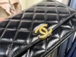 chanel 2024A messenger bag n small black oil waxed leather n gold double logo embellishment n will be a clever combination of luxury and beauty n with black and gold woven thin chain and small handle n not only highlights the sense of gold but also enhance the overall atmosphere n size: 24 * 16.5 * 6.5cm