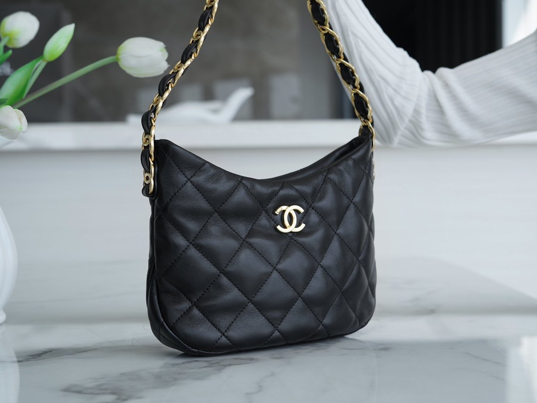 𝗖𝗛𝗔𝗡𝗘𝗟 𝟮𝟐𝑲 New! 𝒉𝒐𝒃𝒐 Underarm Bag Authentic Leather Black ▪️