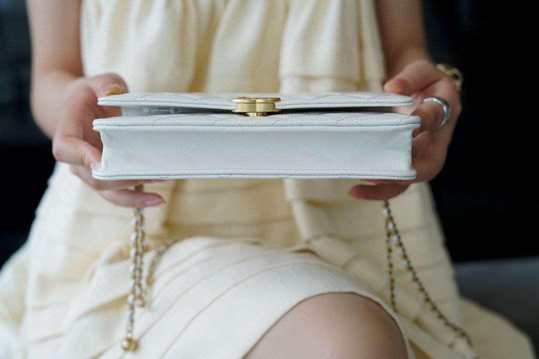 ๐Ÿš๐Ÿ˜๐Ÿš1 Premium Handmade Workshop Double Gold Beads ๐’˜๐’๐’„ White ๐Ÿ‘ฐnn is made of smooth smooth glossy calfskin leatherโœจ with a delicate and glossy handfeel With the old made hardware, easy to shape a vintage and elegant yet chic ๐’‡๐’†๐’†๐’ Every detail exudes a sense of sophistication, understated but high-class to say it โ™จnnSize: 12.3*19.2*3.5cmn ๐Ÿ”: 21180880