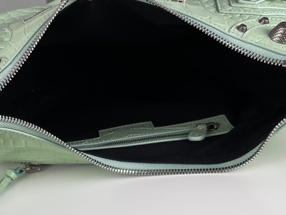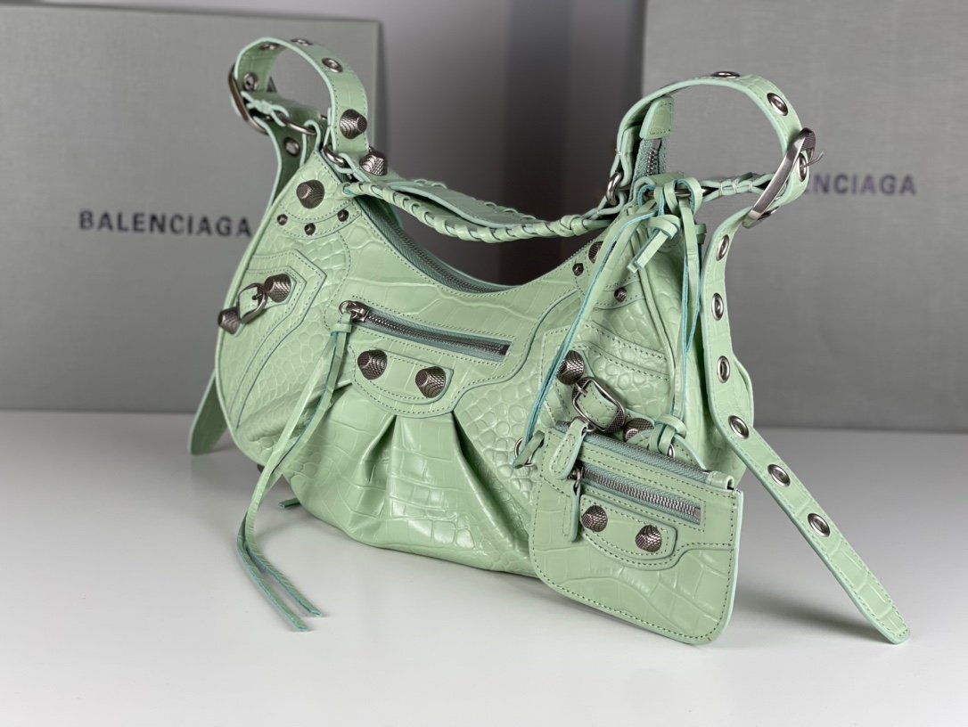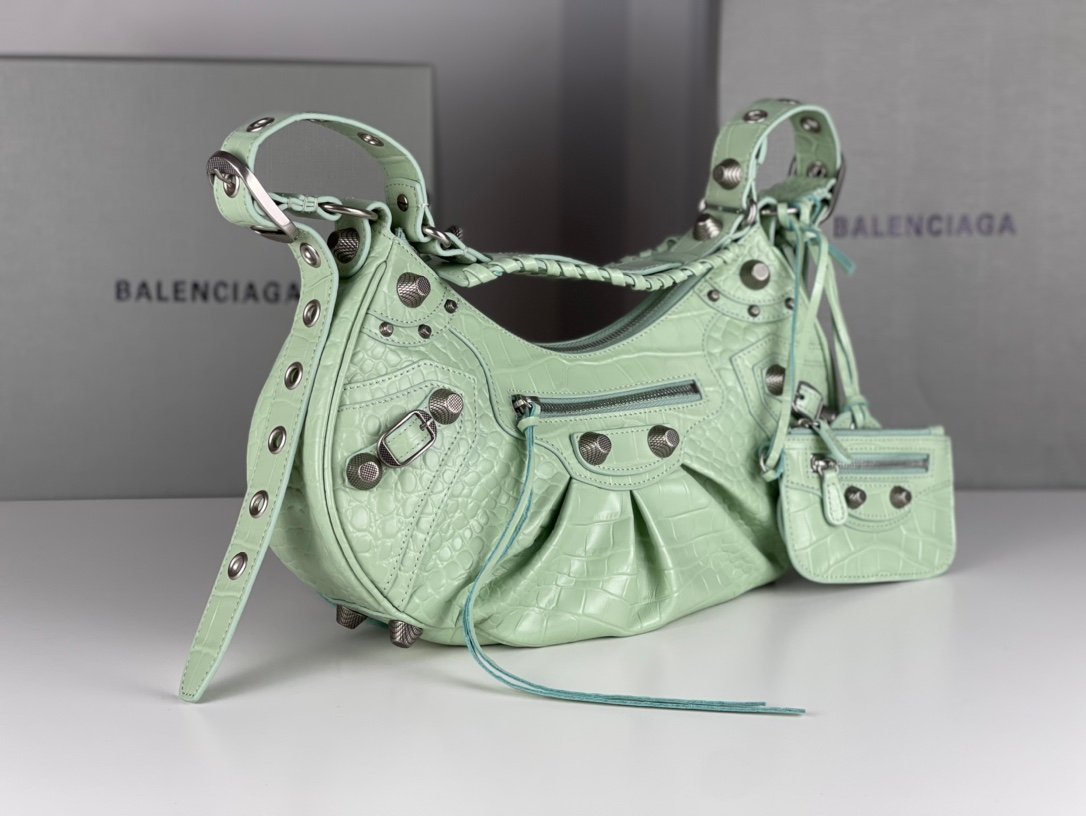 🔘 Crocodile Mint Green 🔘 Shipping ✔️nBalenciag Le Cagole Half Crescent Armpit Dumpling Bag n Tribute to the classic biker bag series of the new king of the bomb debut la ~ in the traditional biker bag to improve on the traditional braided shoulder strap additional eyelets and hanging leather card holder, heart-shaped mirror ♡ along with the classic elements of the bikes! The details are very elaborate The upper body is simply obsessed n retro rate Full of rock and roll breath of bold and edgy Spicy Girls Ben Hot must be manually a love! n Model No.: 701 Small n Size: L26XH16XW10CM $223.00