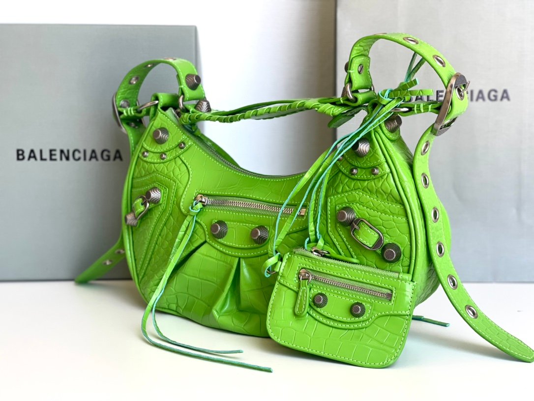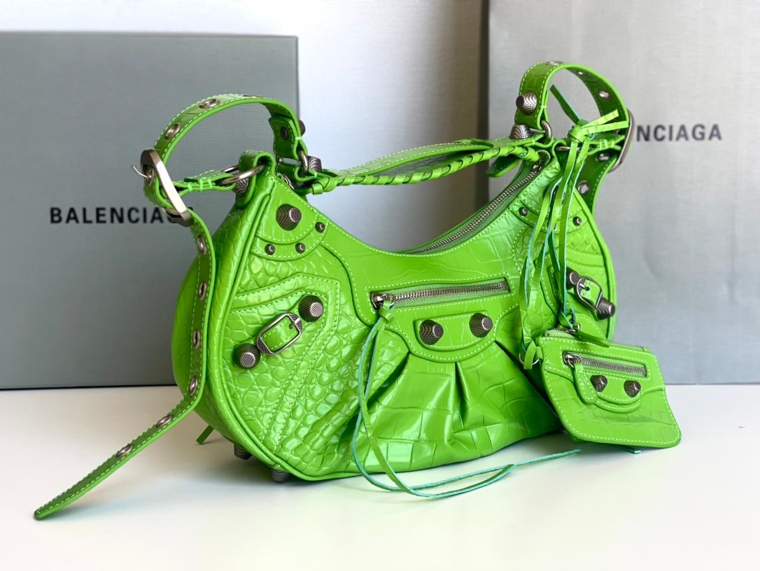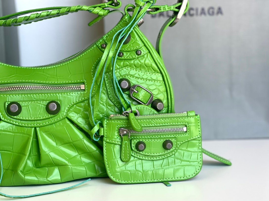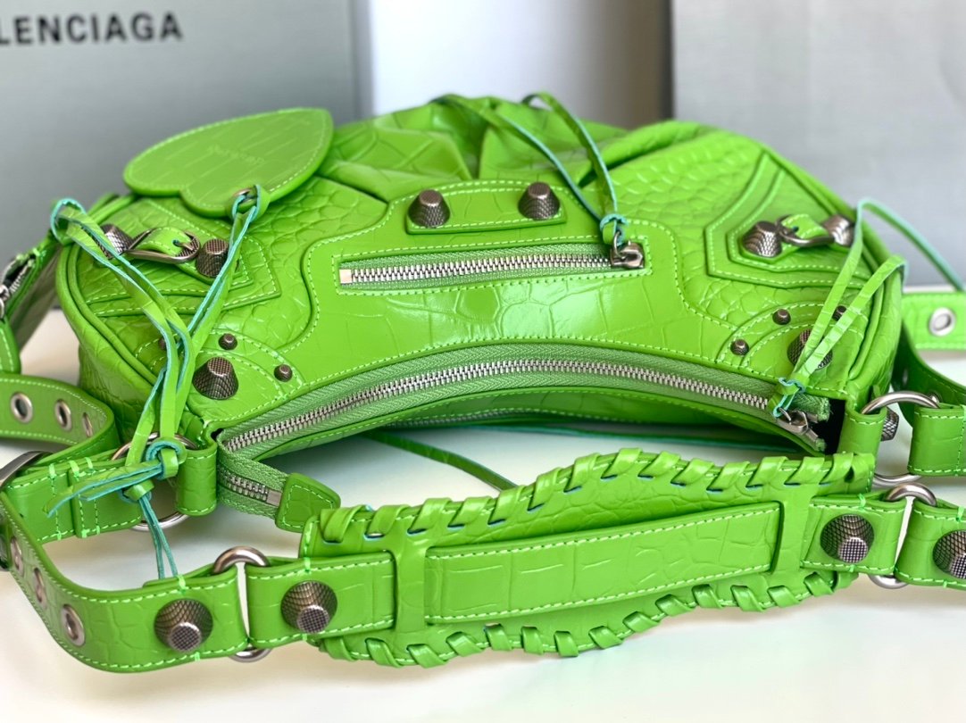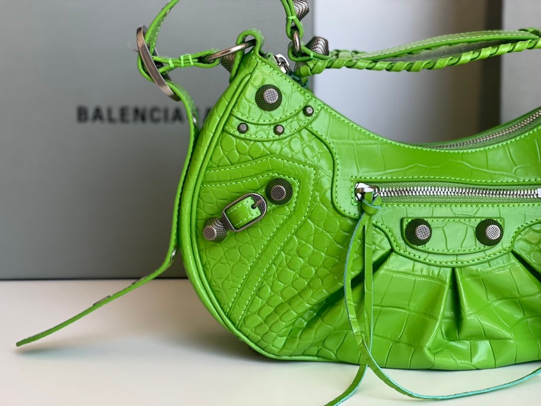 🔘Crocodile print apple green 🔘Shipping ✔️nBalenciag Le Cagole half-moon crescent armpit bag dumpling bag n homage to the classic biker bag series of the newest king of the bomb debut la n ~ in the traditional biker bag on the improvement of the adjustable weave shoulder strap with additional eyelets and hanging leather card holder, heart-shaped mirror ♡ along with the classic elements of the bike! The details are very elaborate The upper body is simply obsessed n retro rate Full of rock and roll breath of bold and edgy Spicy Girls Ben Hot must be manually a love! n Model No.: 701 Small n Size: L26XH16XW10CM $223.00