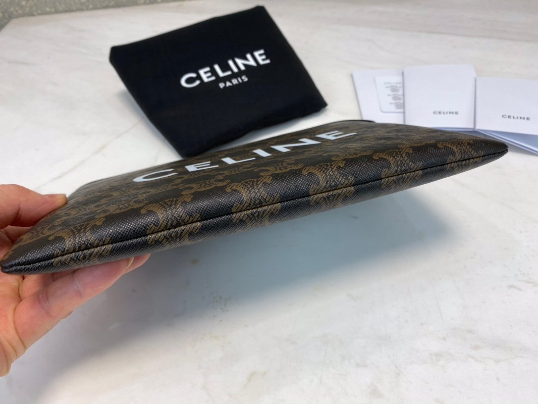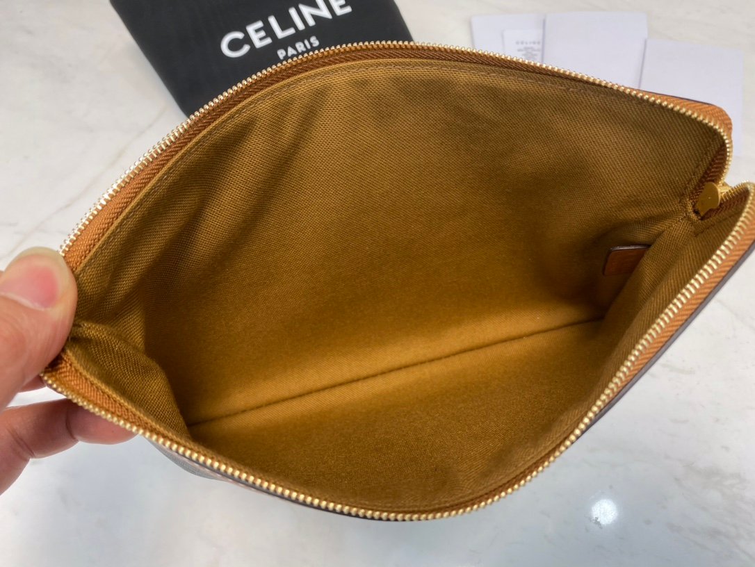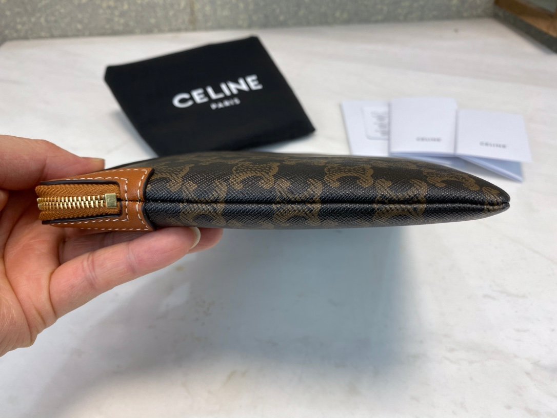 🎀CELiNE🎀Small TRIOMPHE canvas and lambskin clutch bagn10 X 7 inches (25 X 17.5 cm)nCoated canvas, lambskin wrapped edgesnFabric fabric liningnHandheld handbagnZipper lock closuren1 main compartmentnNo. 10D672BZQ.04LU np260