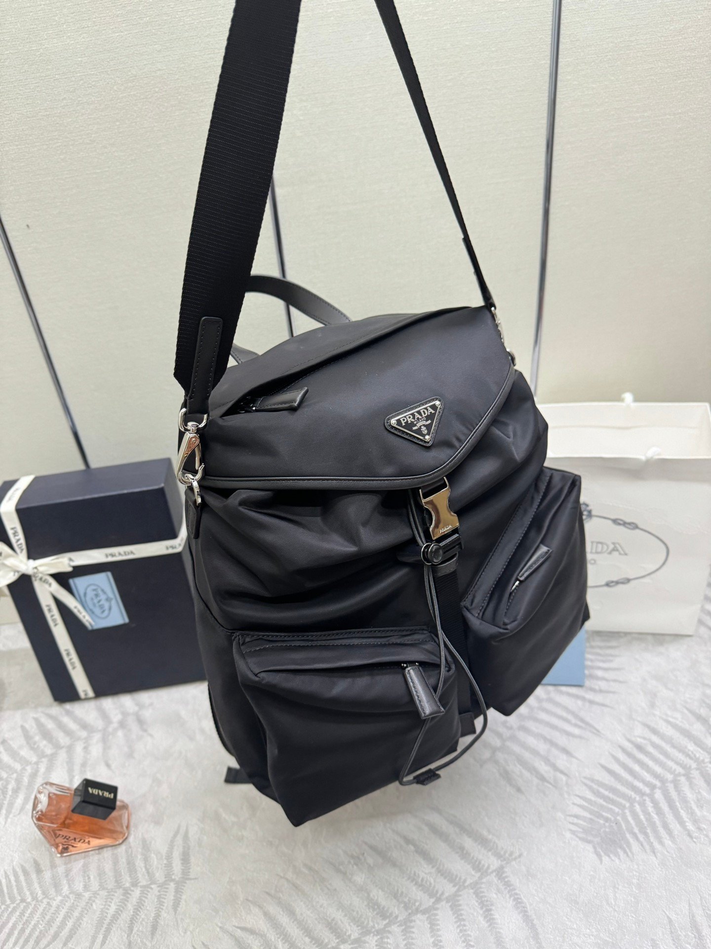 This runway style backpack is made of imported nylon fabric, calf leather, and top of the line hardware. The front panel features a buckle/flip cover and 2 pockets, and comes with a detachable nylon shoulder strap. The back panel can also be carried on both shoulders and inserted into a suitcase, with multiple compartments and ample space 👏 It’s not a problem to carry and travel normally, it’s both fashionable and practical. Hurry up to get it. unisex 👏👏