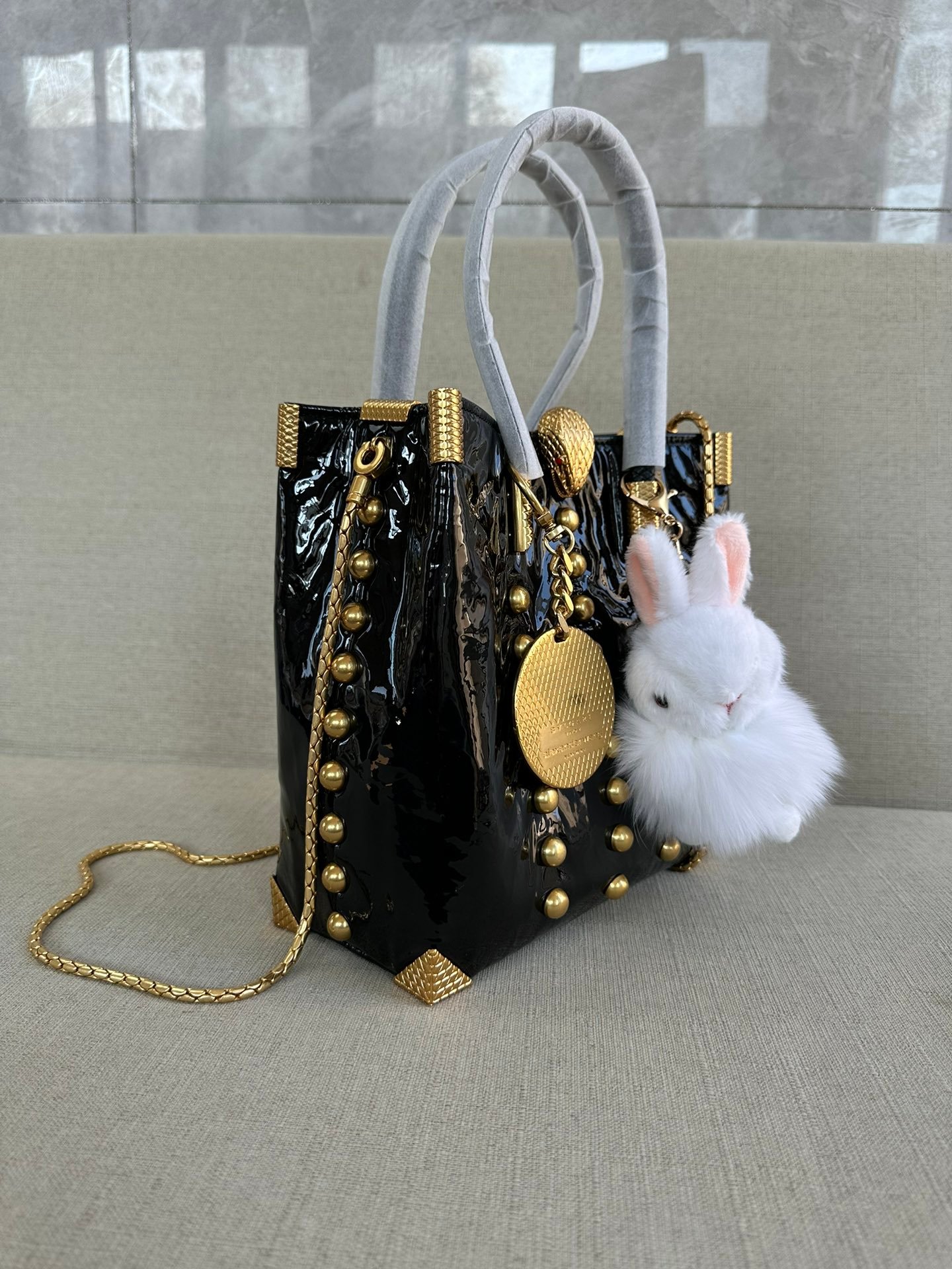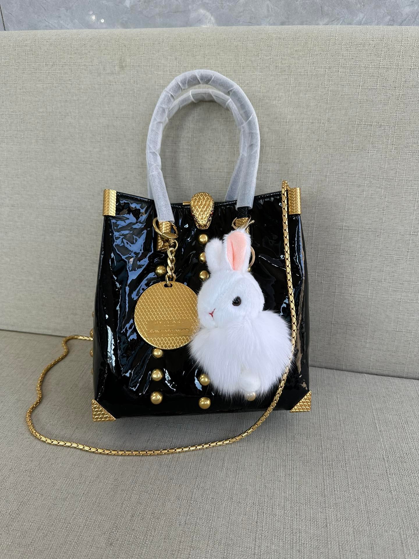 Home BAGS BVLGARI 🐭alexanderwang Alexander. A collaboration between King and Bulgari! 100% authentic! ⚠️100% full imported animal skins! Inside are all full leather, handbag crossbody bag shoulder bag ! Iconic snake head logo! Woven sheepskin handles and bottom hardware corners! With a movable shoulder strap! Can be handheld shoulder can be crossbody, ⚠️ with a rabbit and copper mirror pendant decoration! Very beautiful! The craftsmanship of each stitch allows you to distinguish F goods from small workshops! Quality details are perfect! Size: bottom length 21 * height 22 * width 10