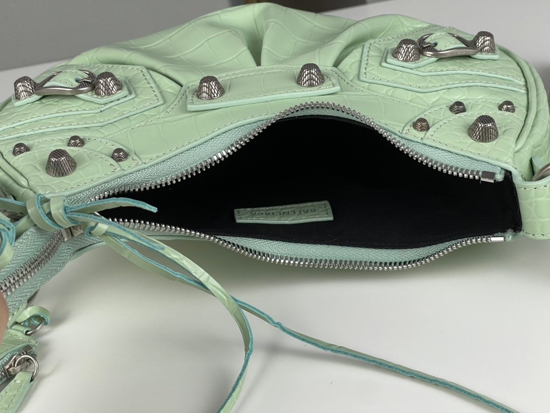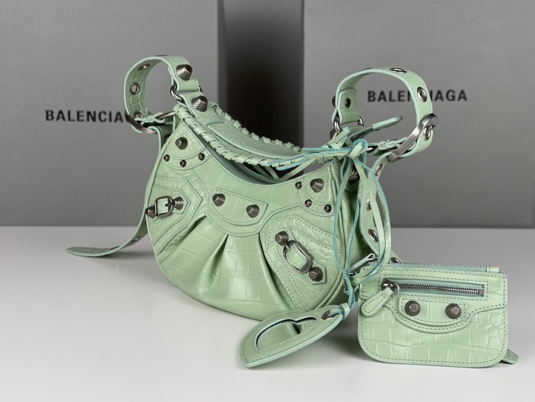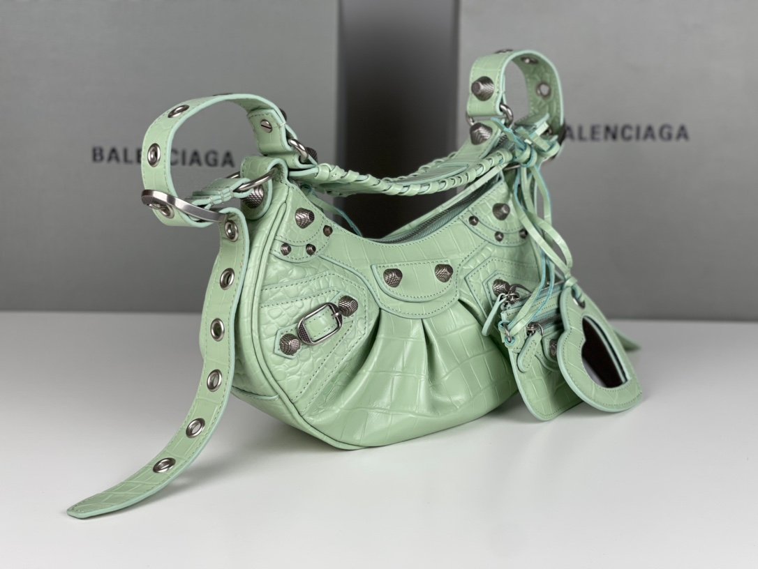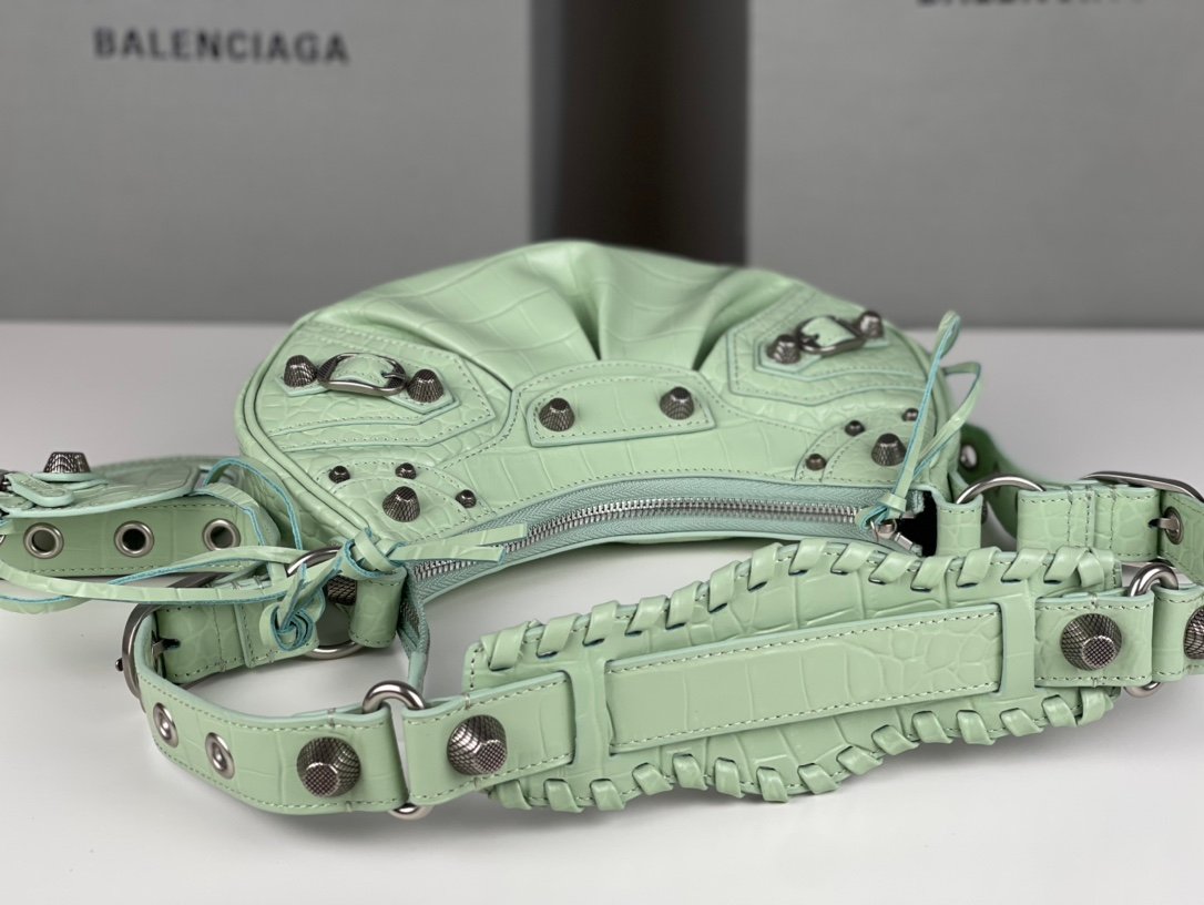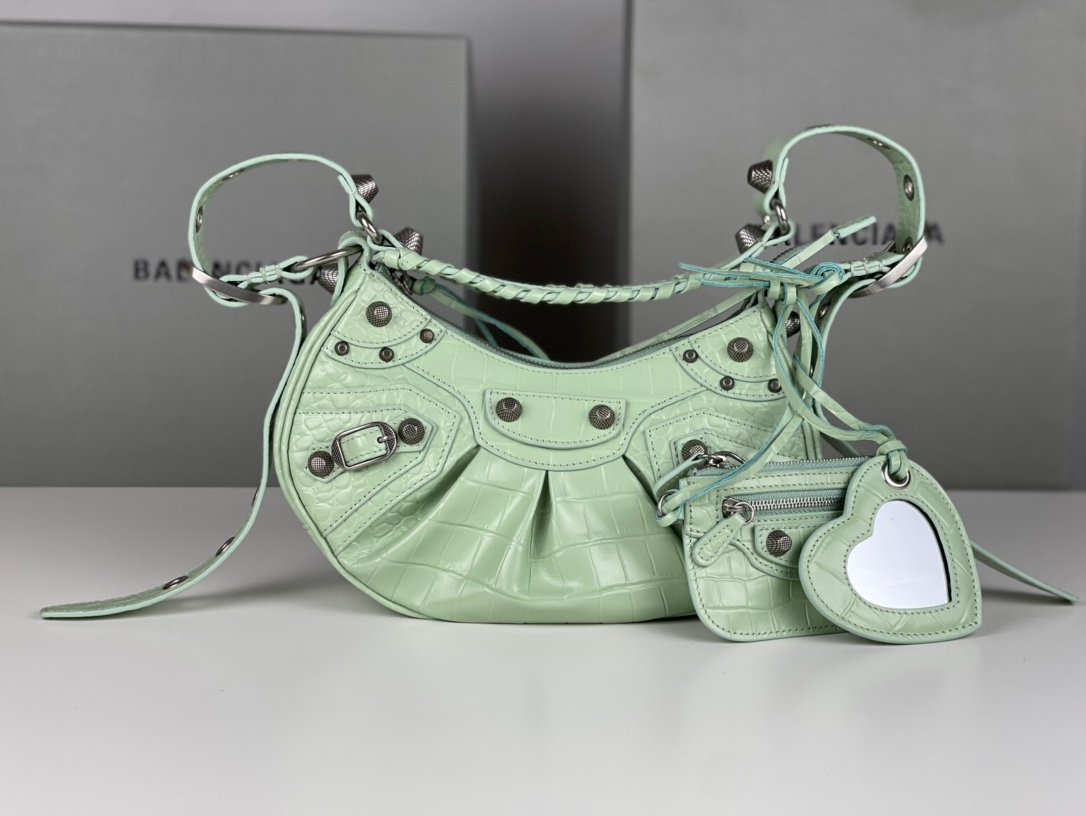 🔘 Crocodile Mint Green 🔘 Shipping ✔️nBalenciag Le Cagole Half Crescent Armpit Dumpling Bag n Tribute to the classic biker bag series of the new king of the bomb debut la ~ in the traditional biker bag to improve on the traditional braided shoulder strap additional eyelets and hanging leather card holder, heart-shaped mirror ♡ along with the classic elements of the bikes! The details are very elaborate The upper body is simply obsessed n retro rate Full of rock and roll breath of bold and edgy Spicy Girls Ben Hot must be manually a love! n Model No.: 701 Small n Size: L26XH16XW10CM