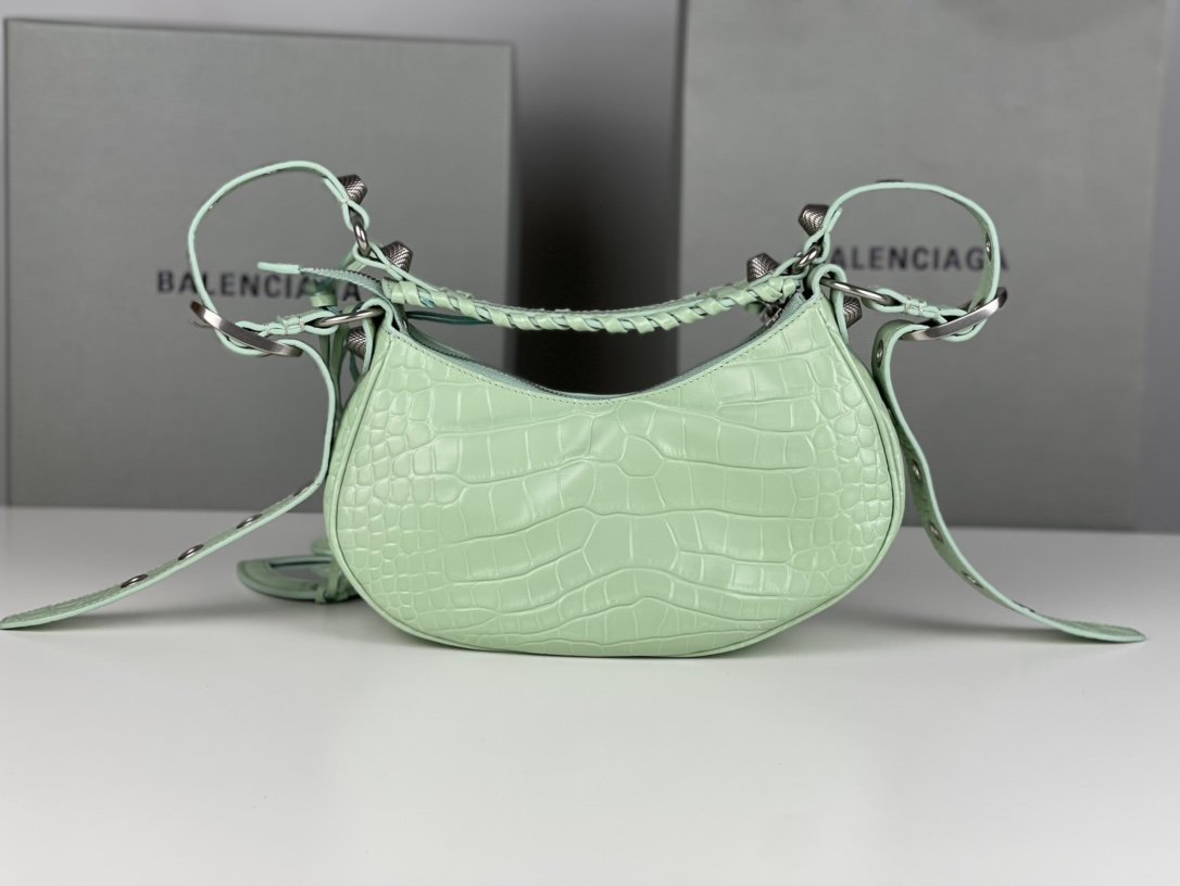 🍏 Crocodile Mint Green 🍏 Shipping ✔️nBalenciag Le Cagole Half Crescent Armpit Dumpling Bag n Tribute to the classic biker bag series of the new king of the bomb debut la ~ in the traditional biker bag to improve on the traditional braided shoulder strap additional eyelets and hanging leather card holder, heart-shaped mirror ♡ along with the classic elements of the bike! The details are very elaborate The upper body is simply obsessed n retro rate Full of rock and roll breath of bold and edgy Spicy Girls Ben Hot must be manually a love! n Model No.: 701 Large n Size: L33XH16XW8CM $240.00