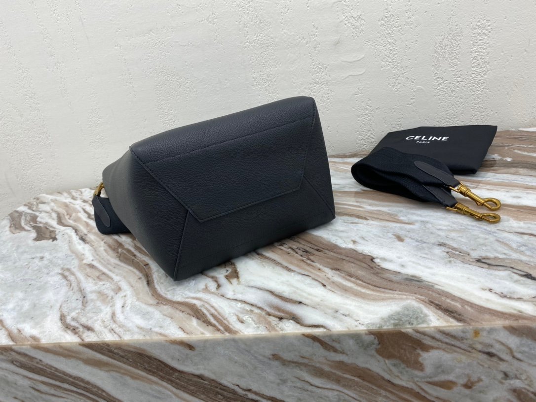 CELINE BELT MICRO MEDIUM GRAINED CALF LEATHER HANDBAGn9 X 8 X 5 INCHES (24 X 20 X 13 cm)n100% Calfskin Leathern100% Calfskin Leather LiningnGolden Metallic PiecesnMagnetic Snap Flap Locking Closure & Flap Under Zipper Locking ClosurenFlat Pocket InsidenFlat Pocket Outside on the BacknRemovable Leather Shoulder Strap L=20 INCHES (50 cm)n Handle length 4 inches (9 cm) n No. 175520p950n Elephant Grey